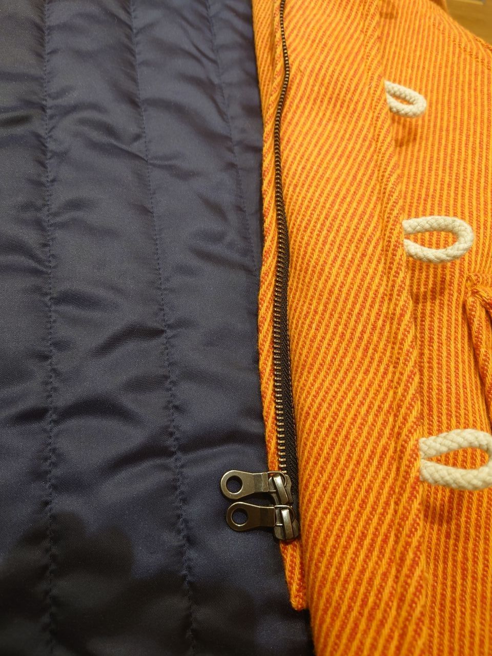 昔ながらのダッフルコートは、裏地、ZIPはありません。