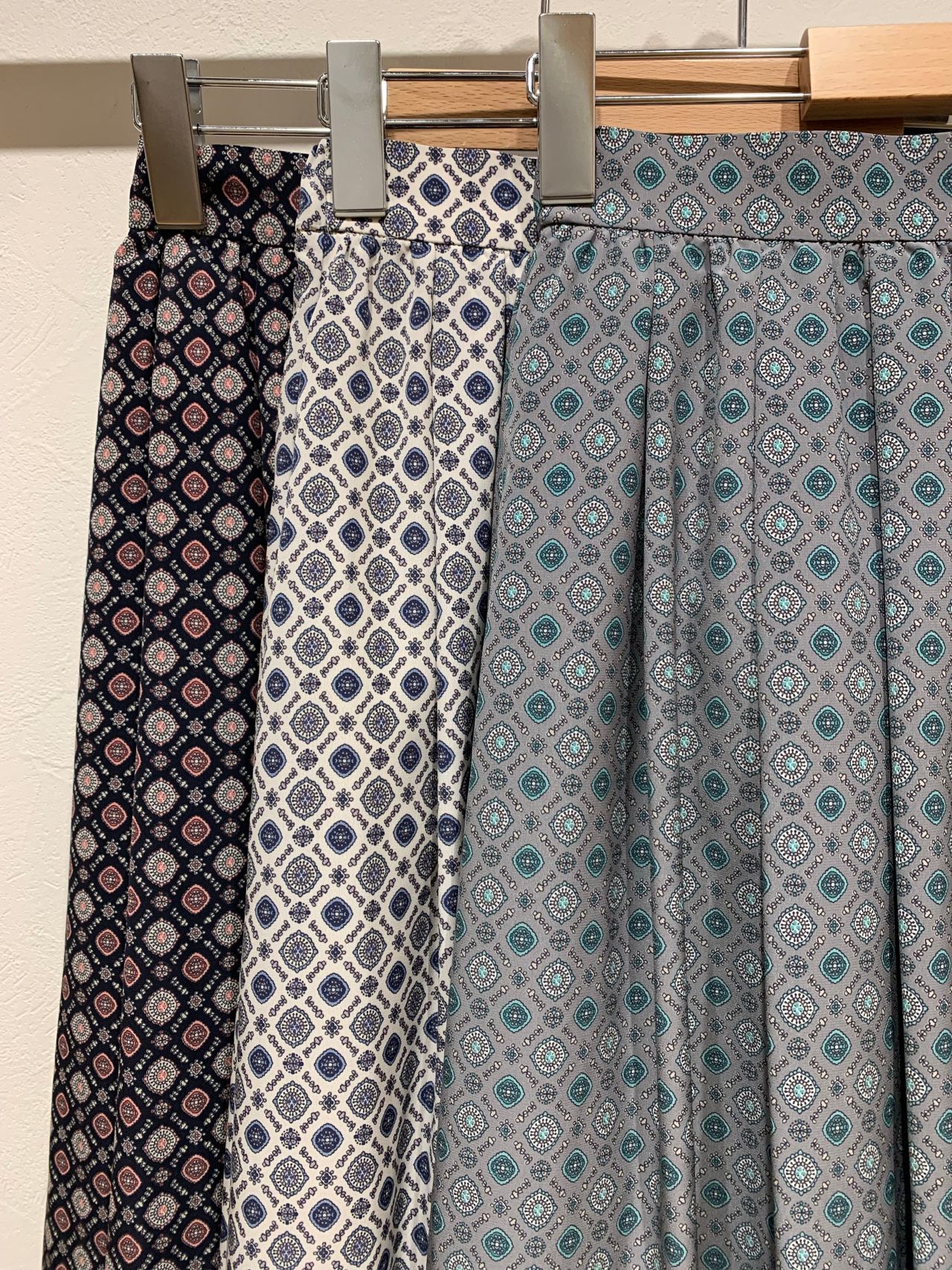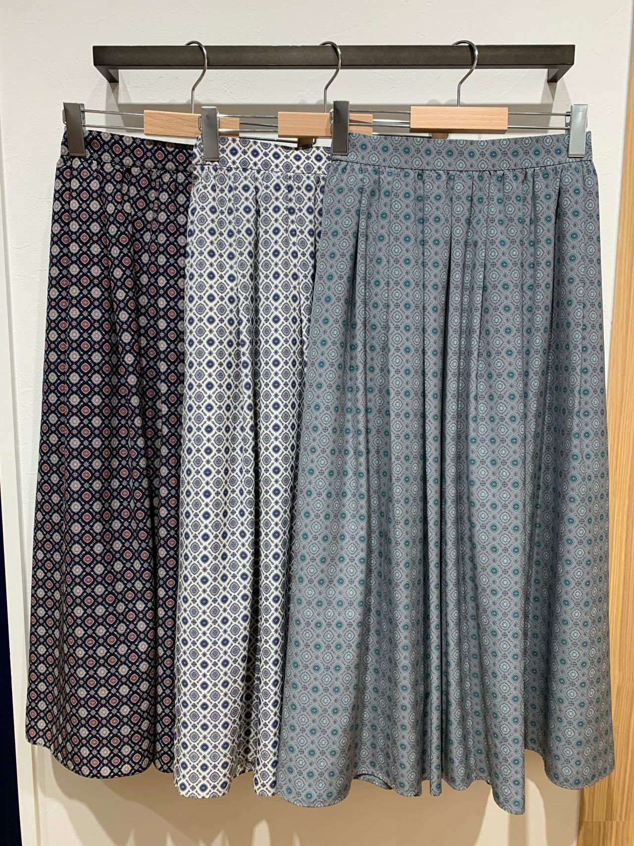 デシン小紋柄ギャザータックスカート