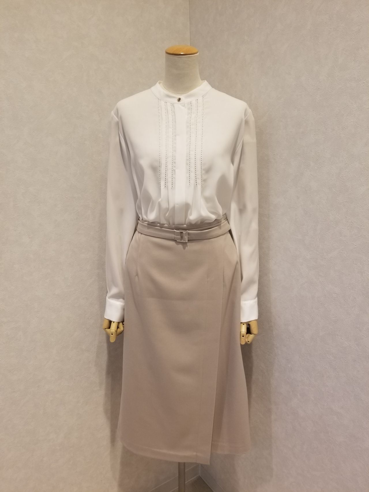 ブラウスはセンターに刺繍を入れて、上品な仕上りとなっています。