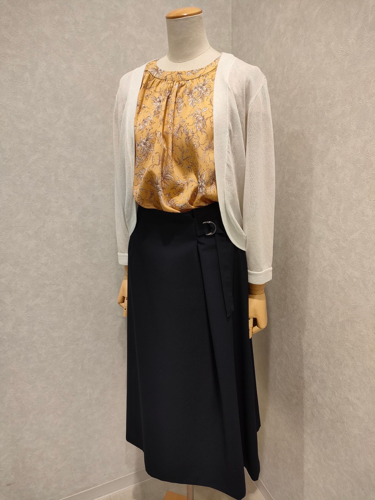 袖の長さが気になる方に、カーディガンを合わせてみると、雰囲気が変わっていい感じに!
