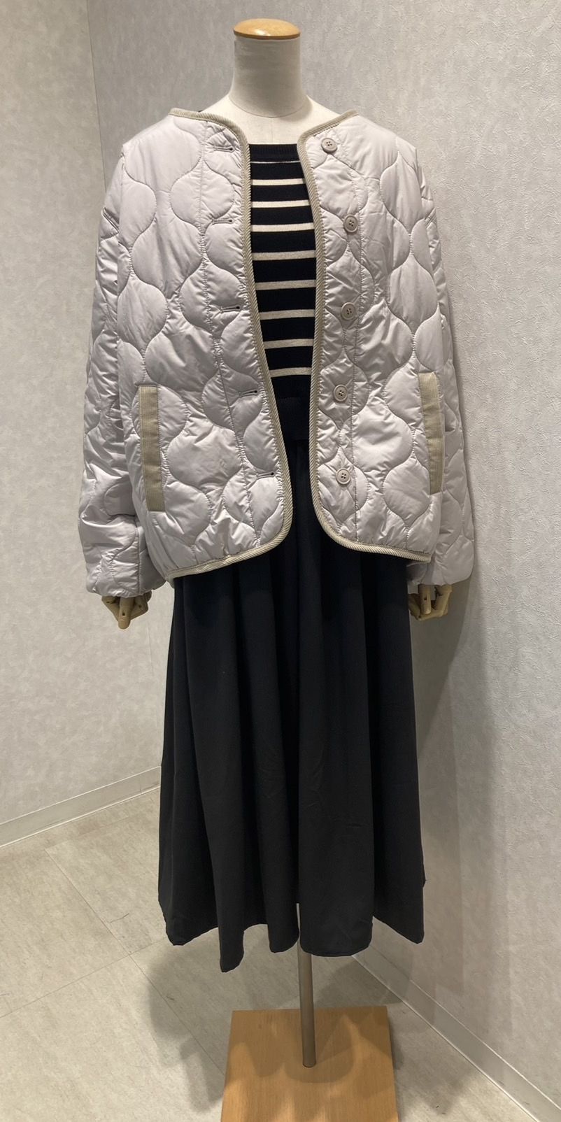 軽めのアウターを1枚着るだけで、雰囲気が変わります。