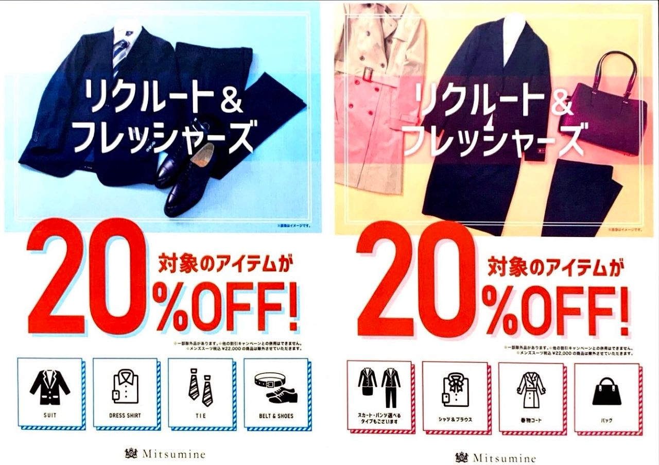 今回はこれから就職活動をされる方や新社会人になる方にお得なリクルート&フレッシャーズフェアのご紹介です。