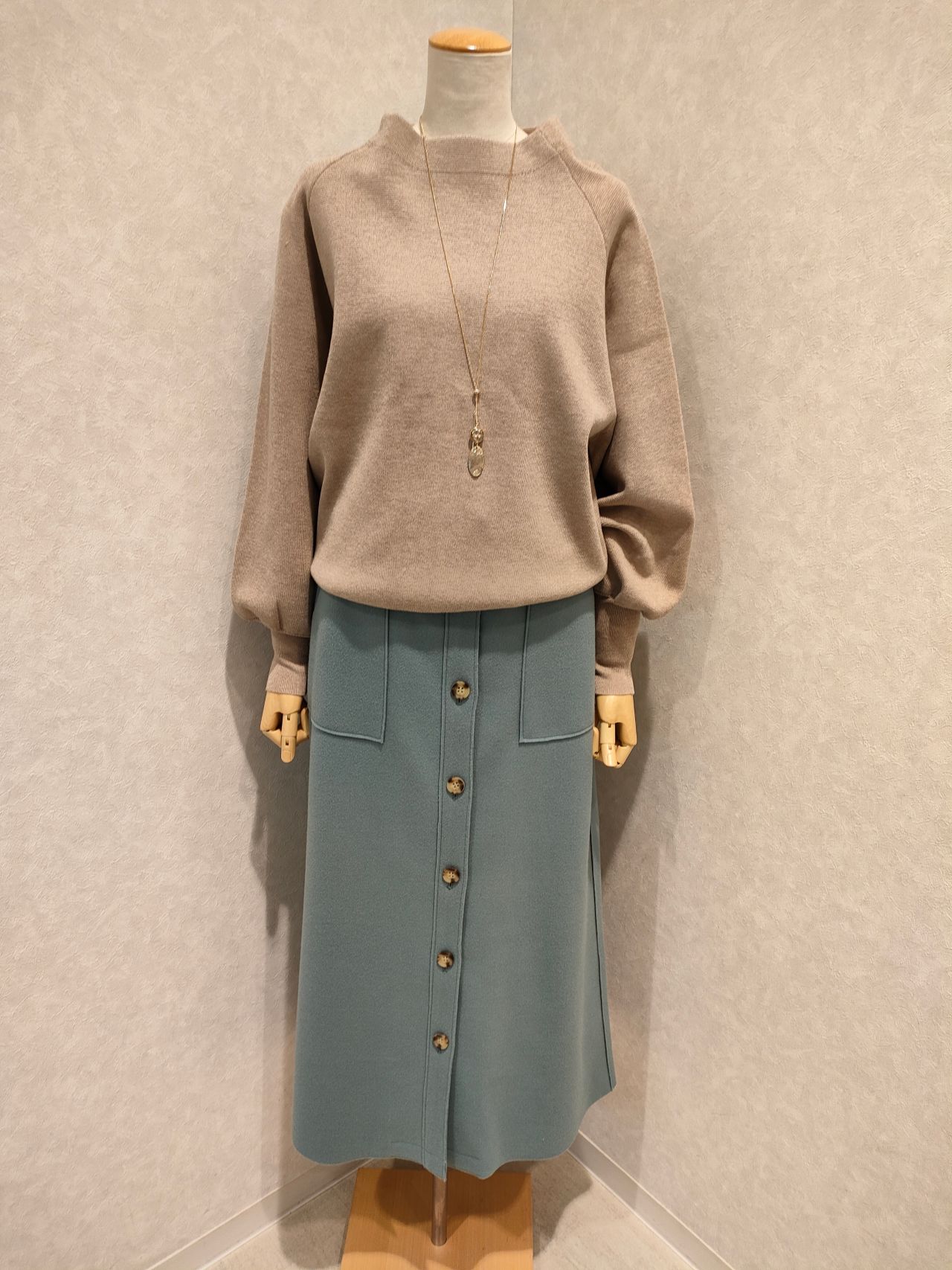 丈が短めなので、ロングスカートやワイドパンツに相性がいいですね。
