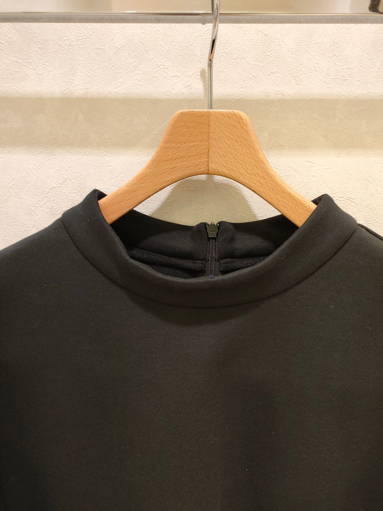 立ち襟がポイントです。首の詰まりはなく、綺麗に着こなせますよ。
