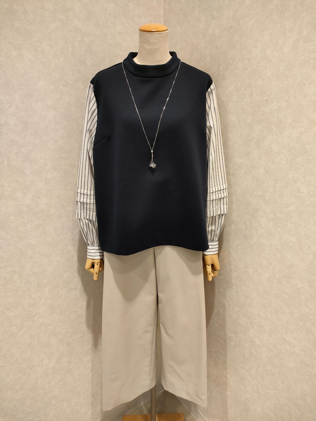 ガウチョパンツで合わせていますが、スカートにも相性抜群です!是非試してみてください。