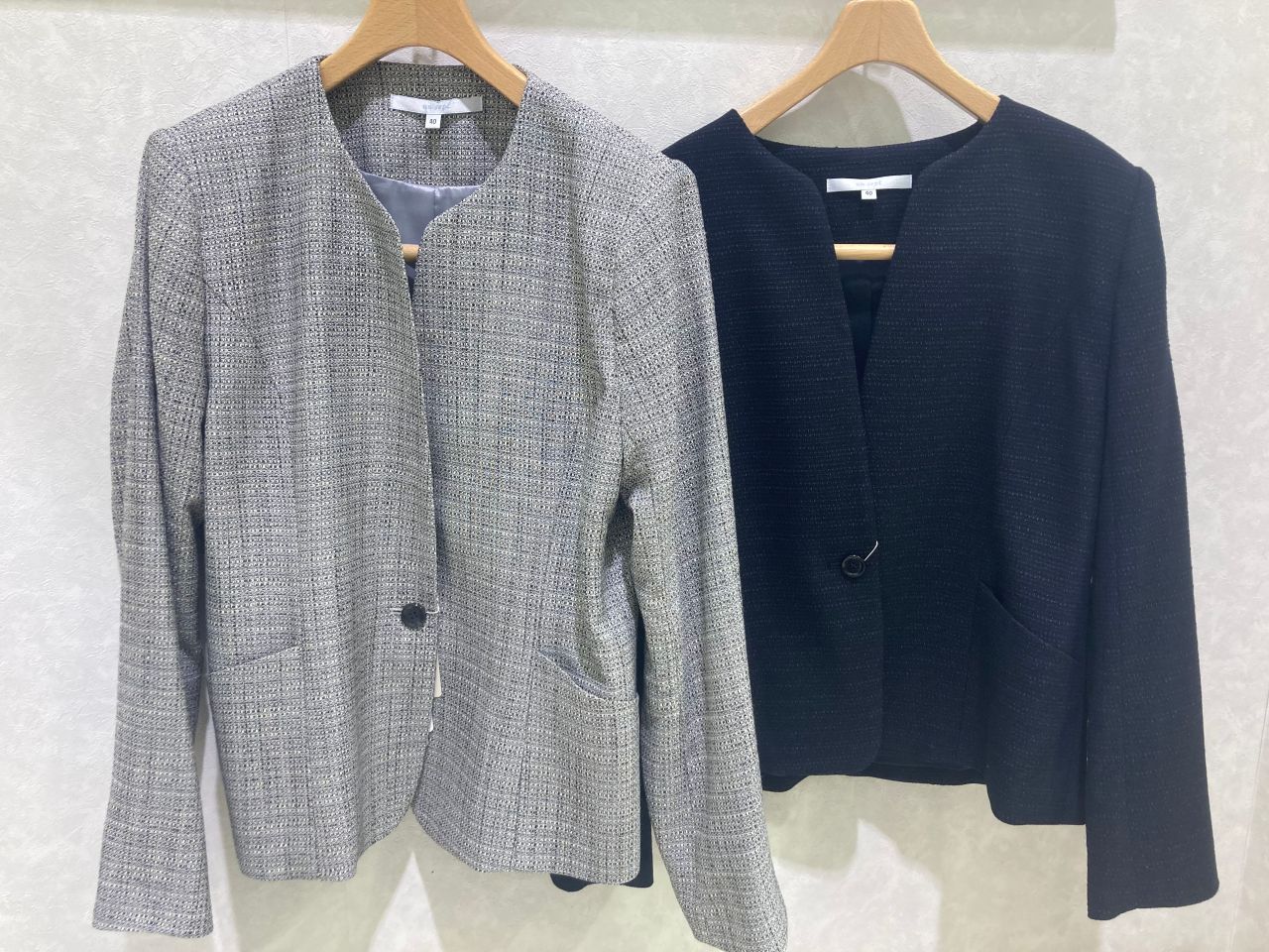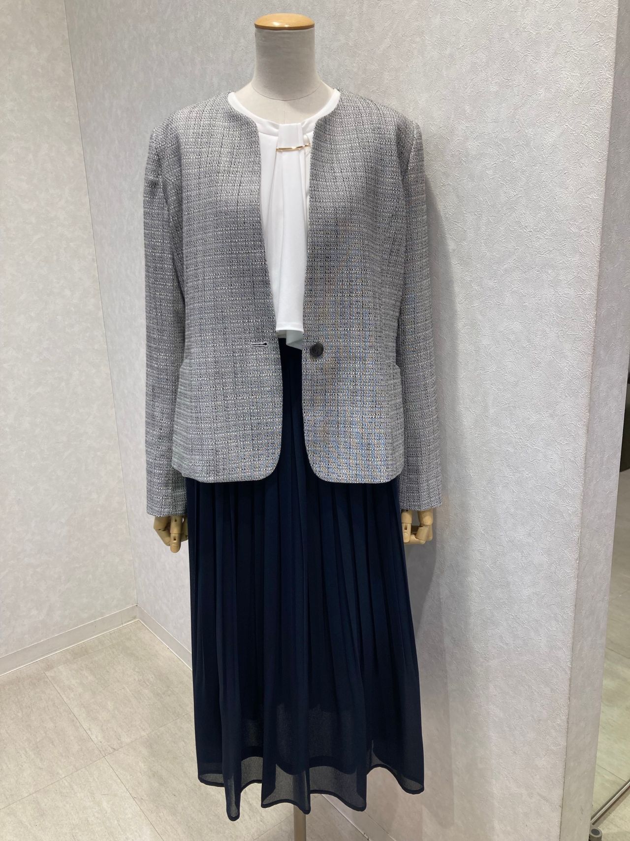ノーカラージャケットですのでワンピースと合わせて頂くのもおすすめですよ!