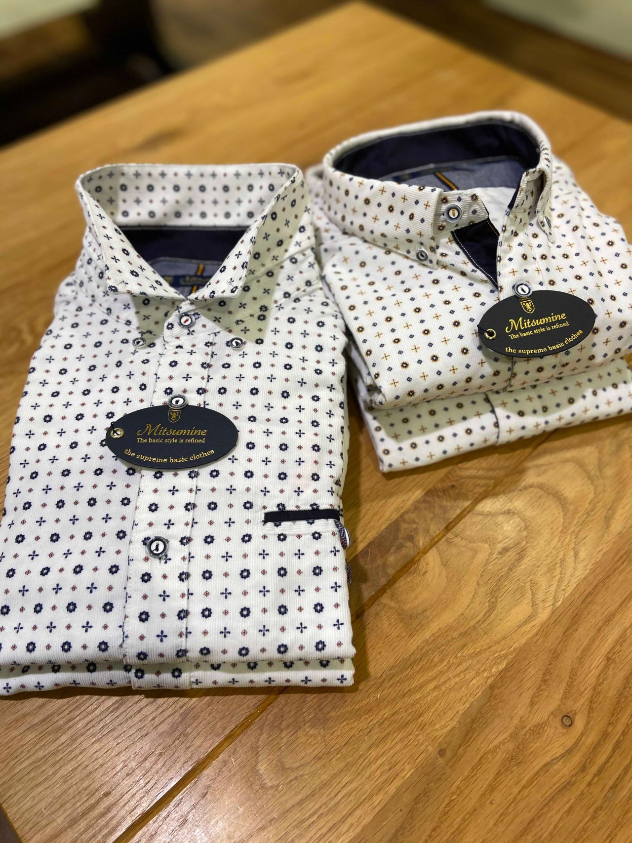 ・コーデュロイ小紋プリントシャツ
