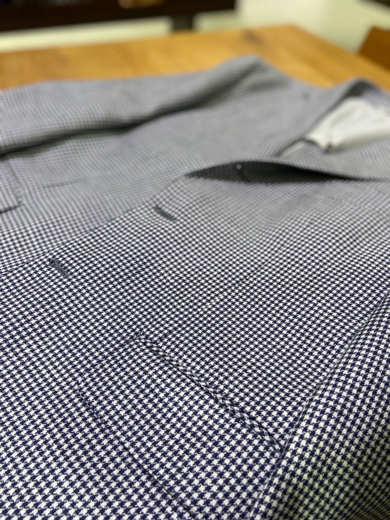 定番の千鳥格子をホワイト×ネイビーで爽やかな印象の夏ジャケットに仕上げました。