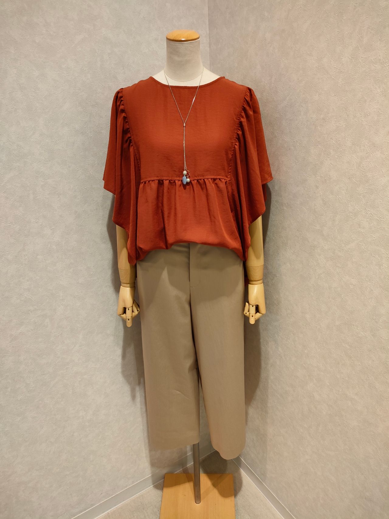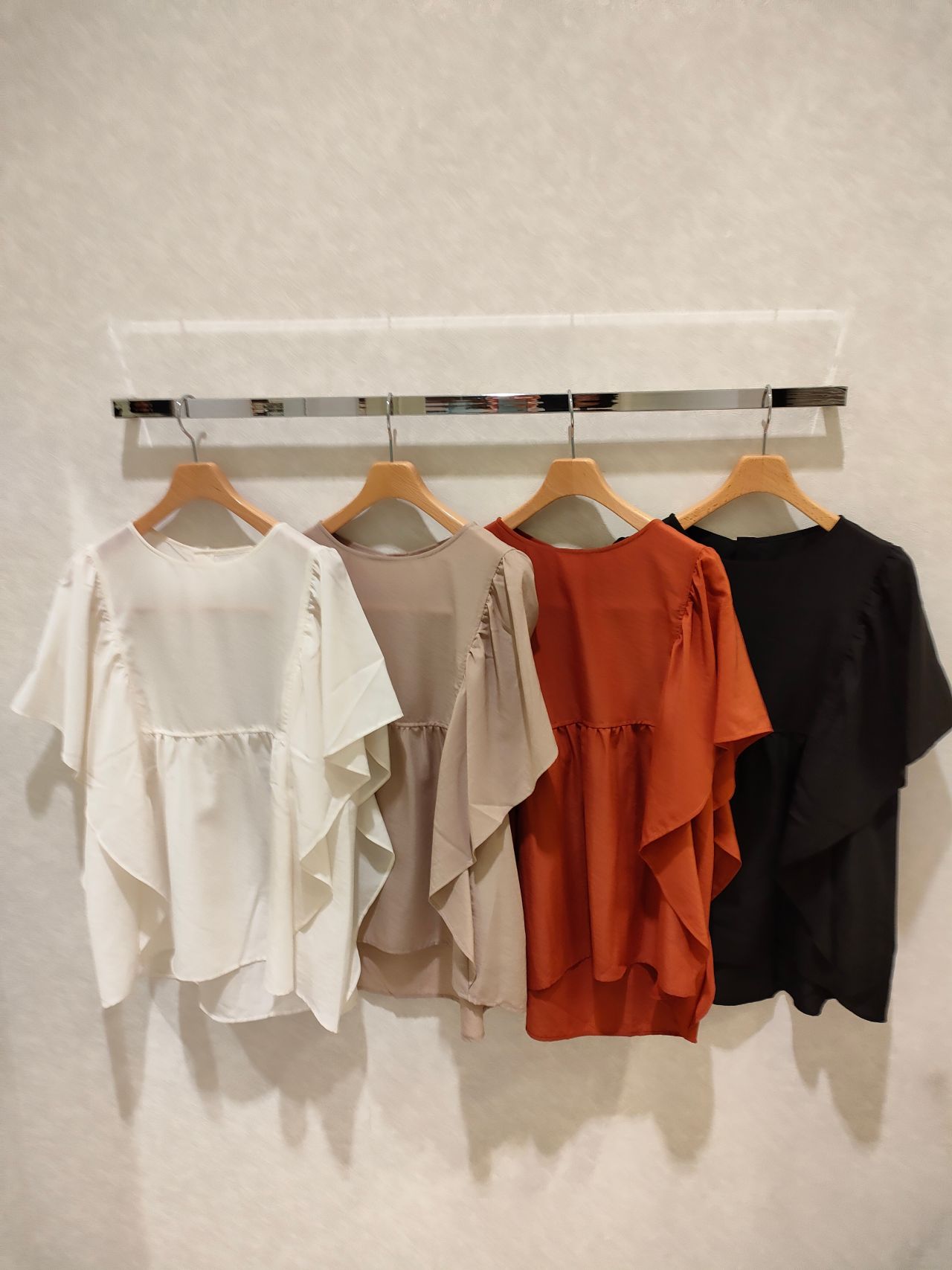 袖がラッフルフレアになっており、フリルより幅が広くなってます。