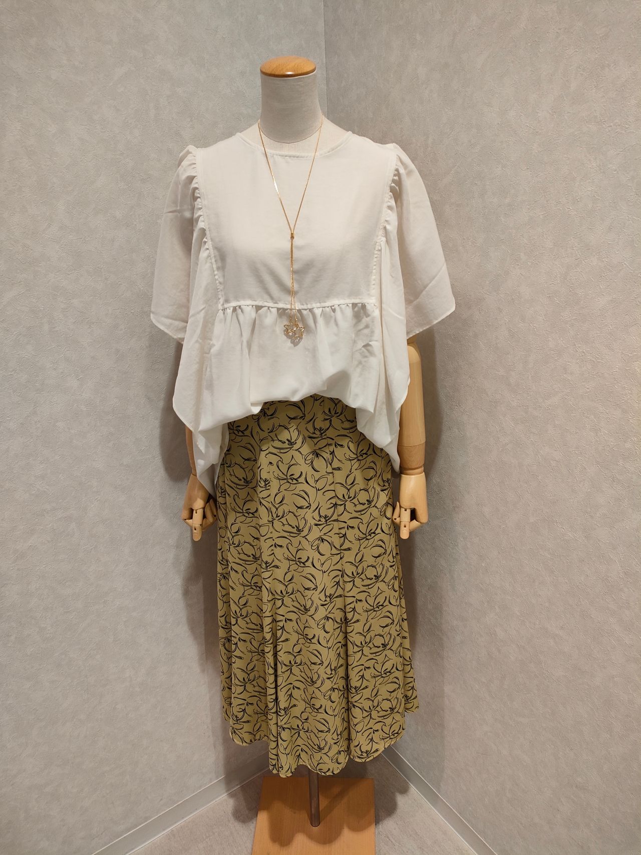 ガウチョパンツや柄スカートにも合わせやすいです。袖は半袖ぐらいなので、ノースリーブのブラウスよりは抵抗なく着れます。