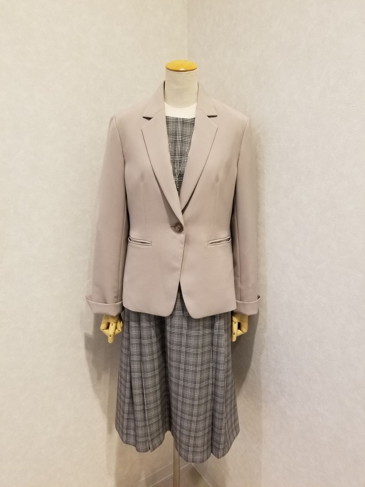 この様に、ジャケットを合わせてもオシャレですね。改まった感じが出て良いですね!