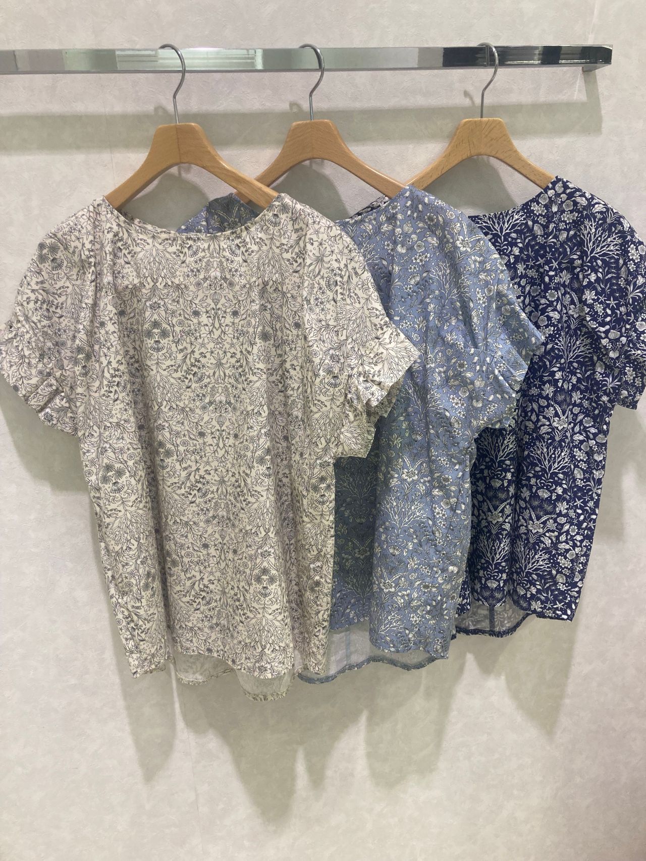 シェルプリントタック袖ブラウス