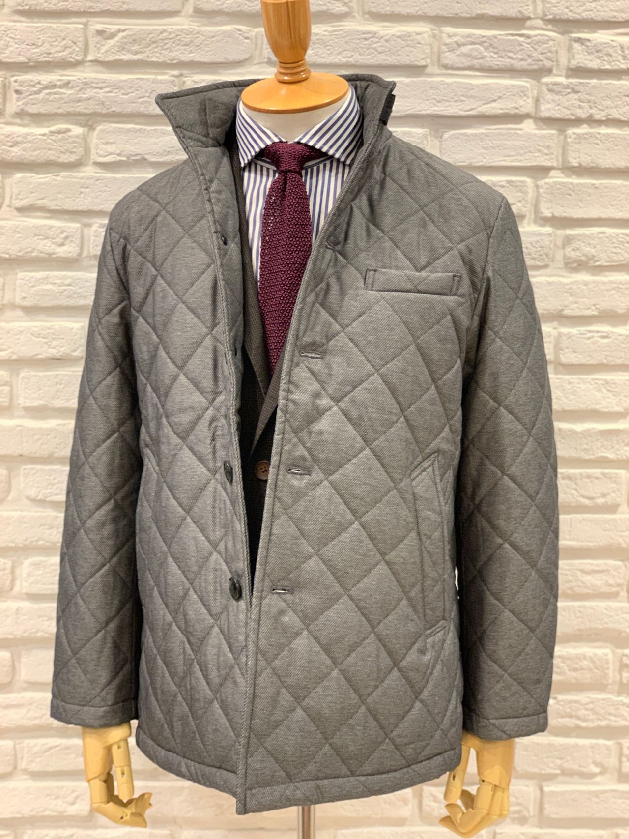 ダウンコートやウールコートの出番はまだでも急な冷え込みに便利なキルティングアウターはいかがでしょうか?