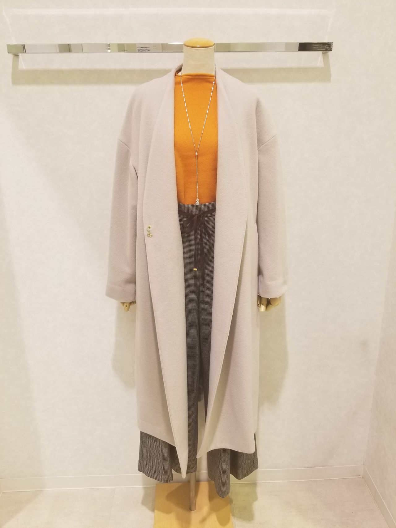 ワンピースと合わせても良いですね!ワンピースは1枚で着れますので、そのままサッとコートを羽織れますね!是非、お試し下さいませ。