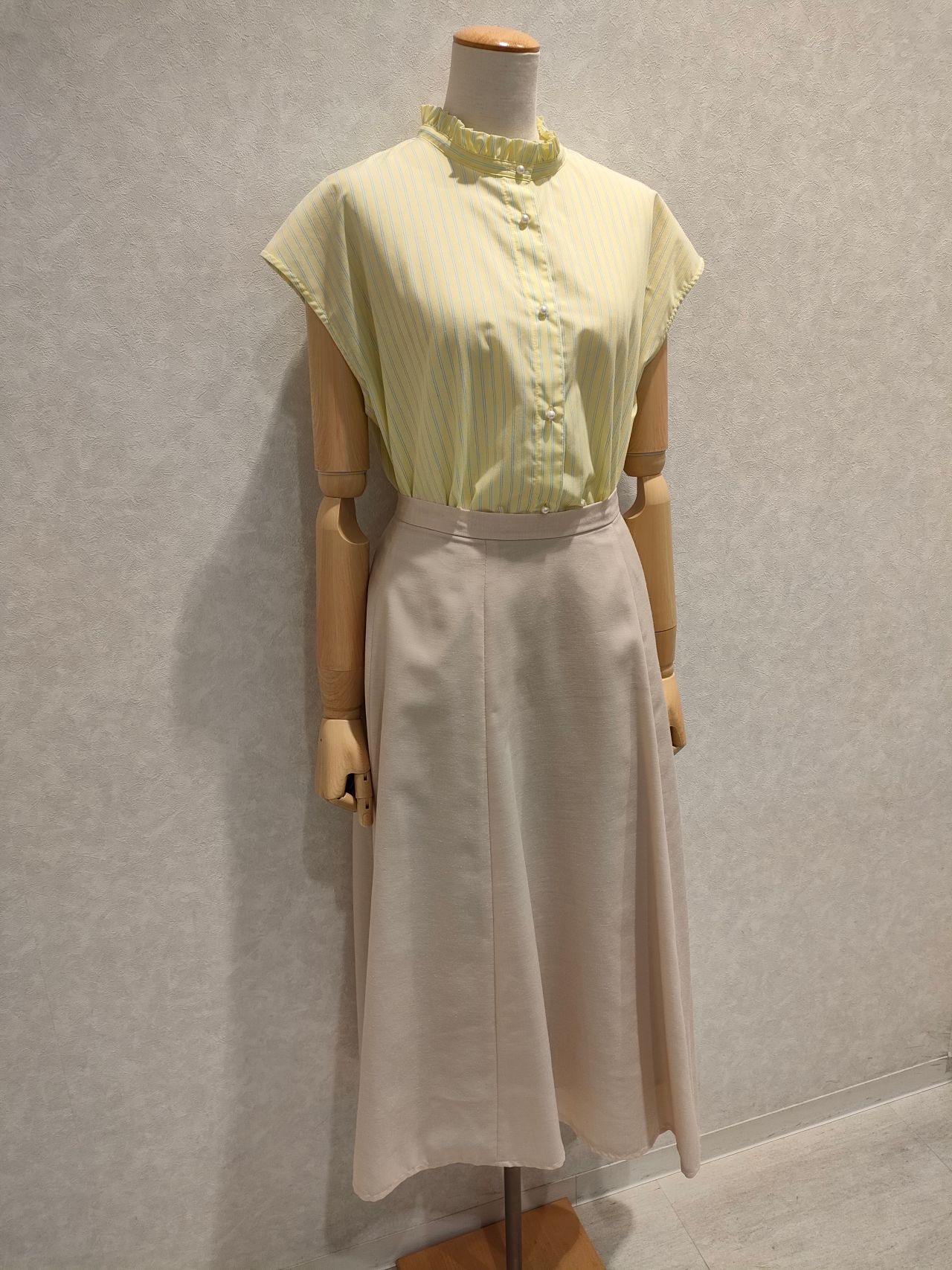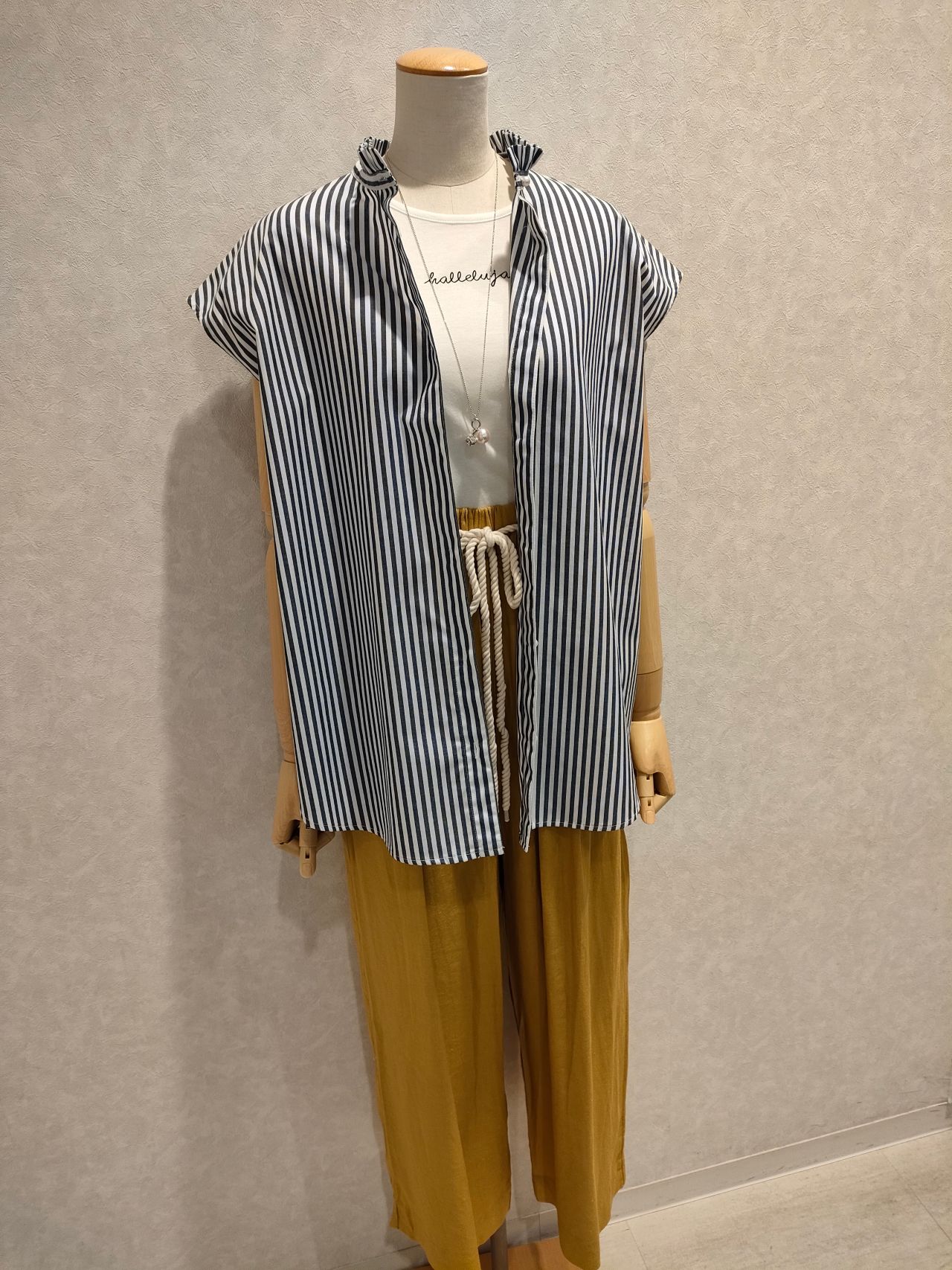 ストライプ柄がとても綺麗めで、1枚着ができちゃうブラウスが入荷しました!