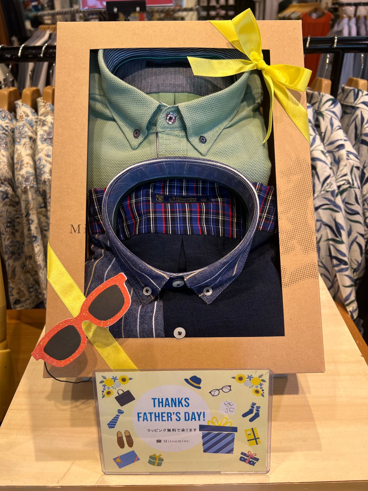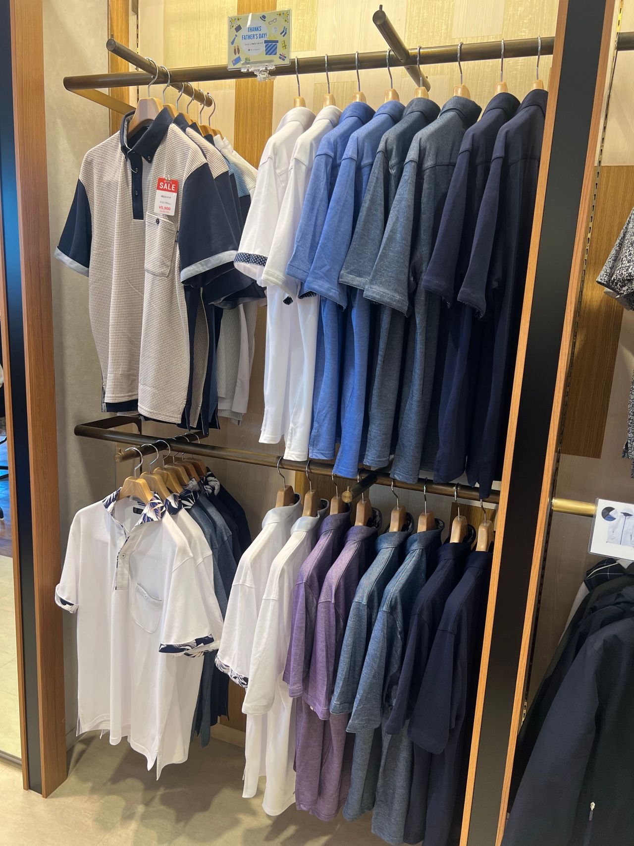 父の日も間近に迫ったこの時期、ポロシャツ以外にもシャツや小物類など、プレゼントに最適なアイテムを多数取り揃えております。