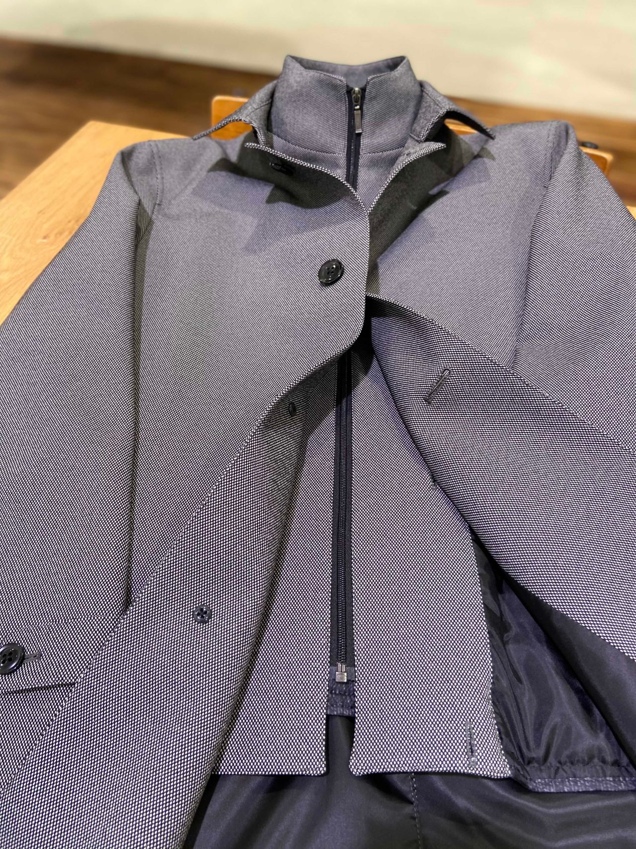 ライナーのジップを閉めて、コート本体のボタンを留めると、冷たい外気の侵入を防ぎ、