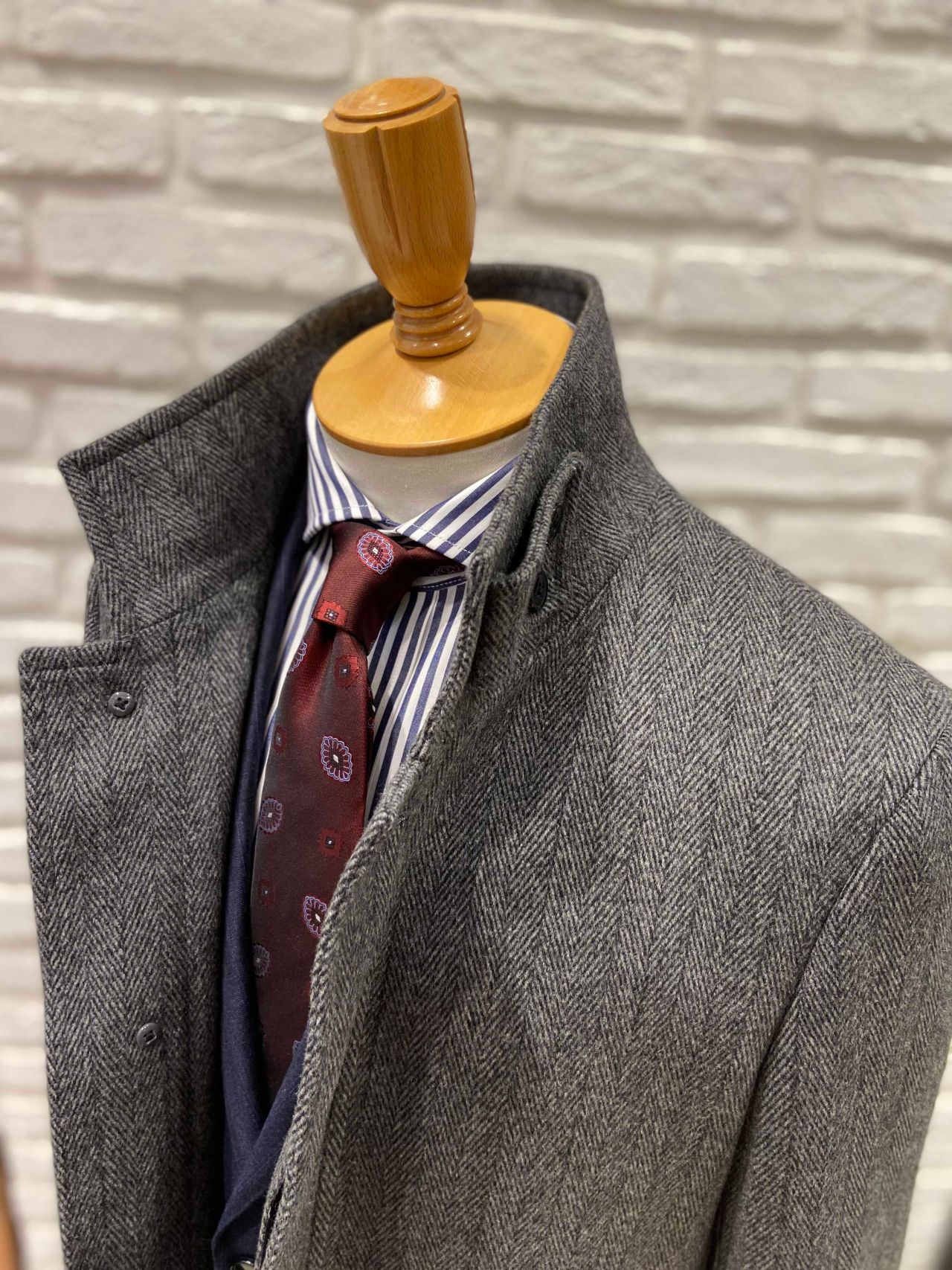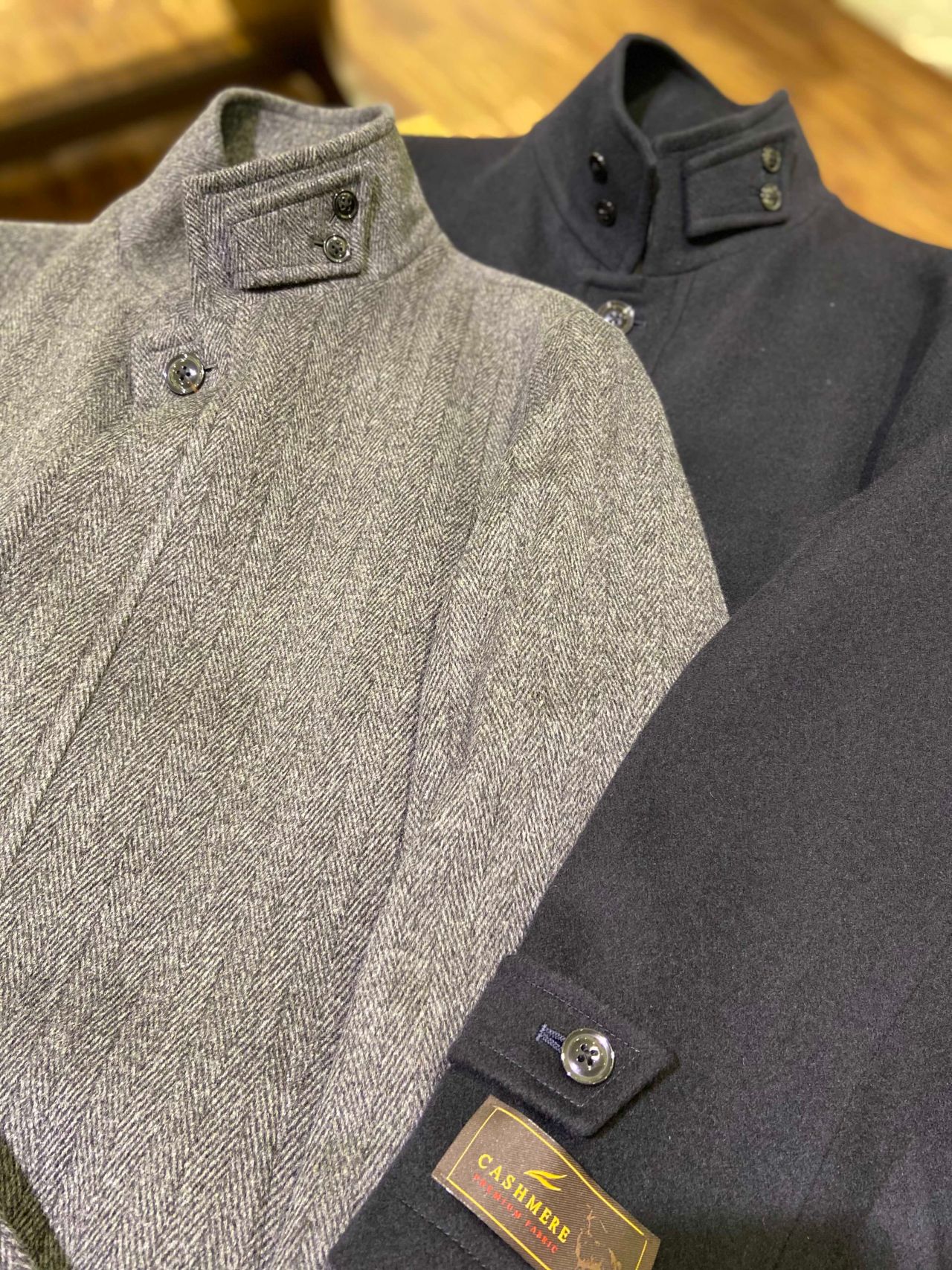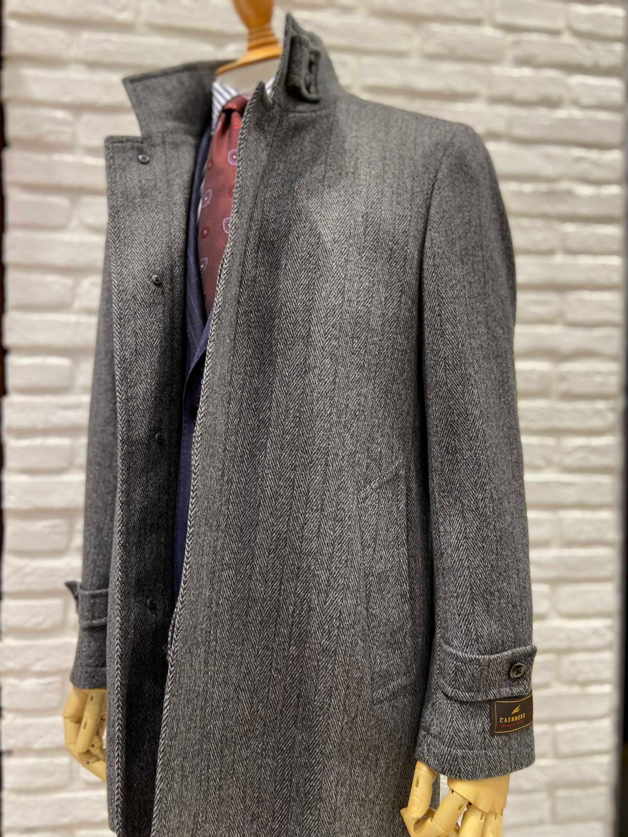 カシミヤコート ヘリンボン スタンドカラーです。