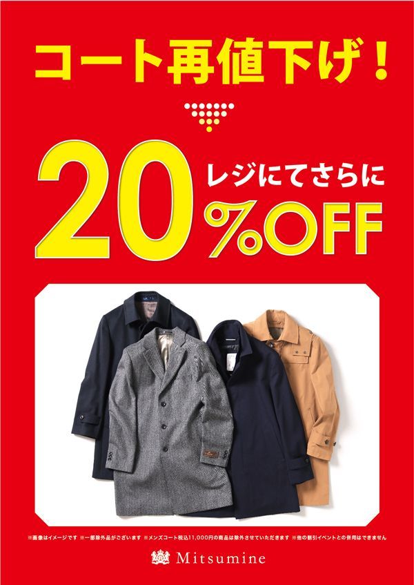 今回のカシミヤコートはレジにて更に 20%OFF となります!
