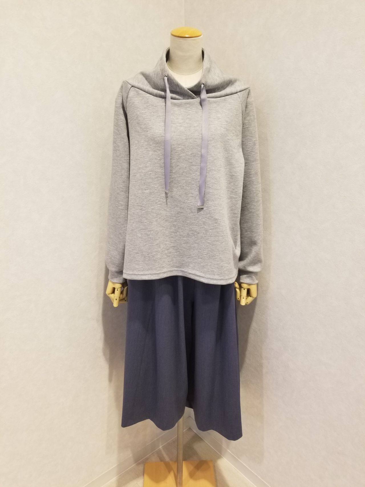 ガウチョパンツで合わせても可愛くはけます。丈の長めのボトムとは、相性がいいですね。