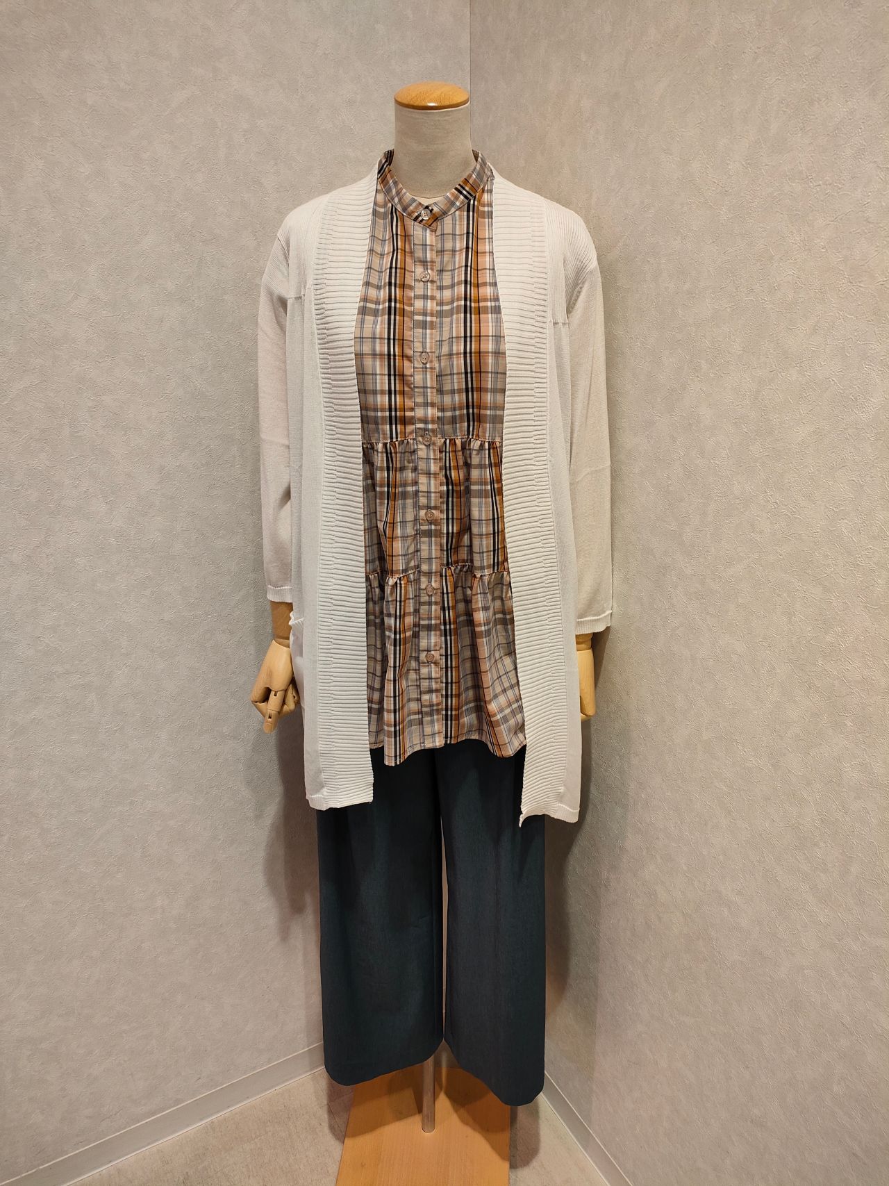 チュニック丈なので、テーパードパンツやワイドパンツに合わせてもいいです。
