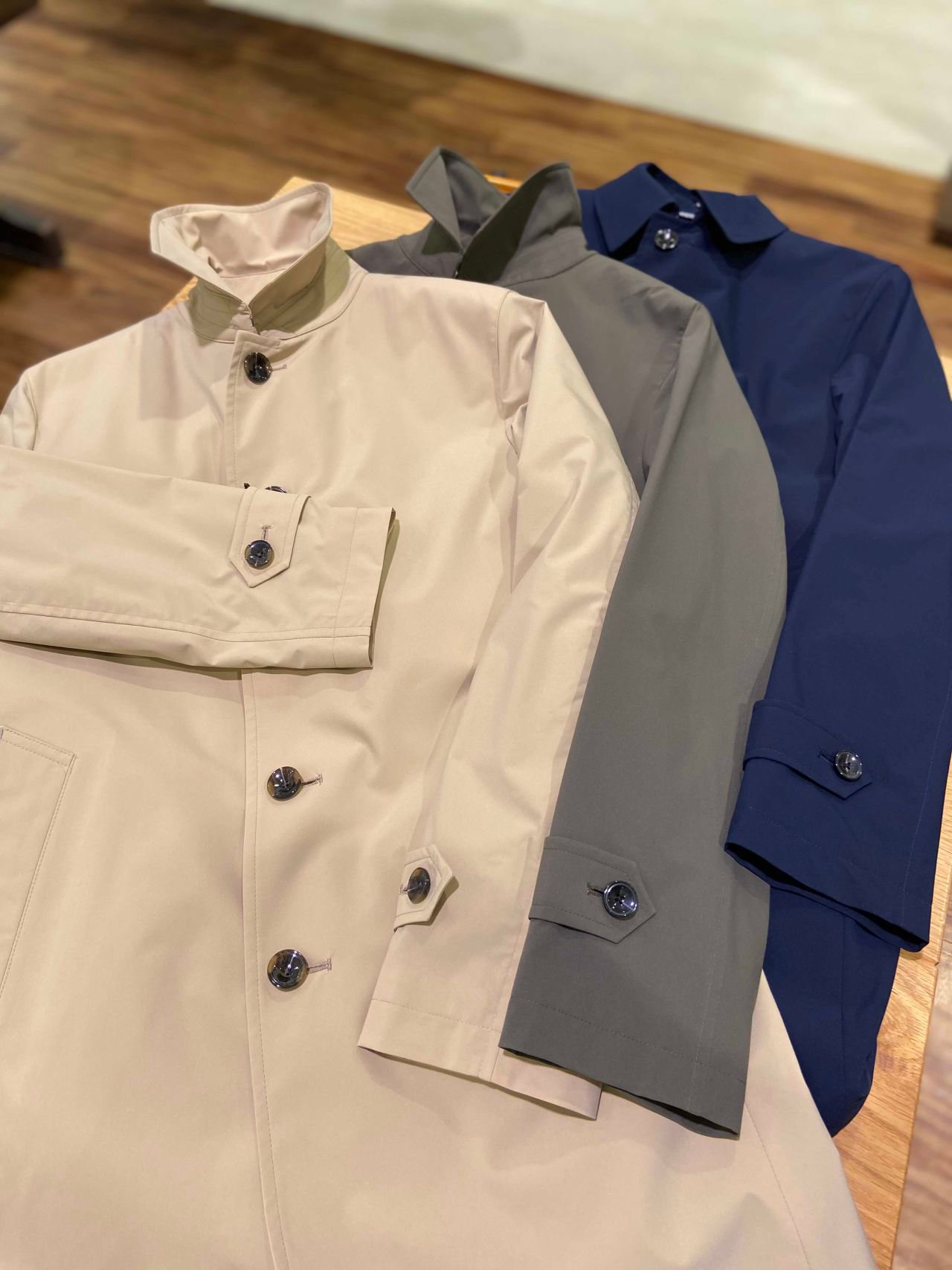 春らしいベージュ、カーキ、ビジネスで合わせやすいネイビーの3色です。
