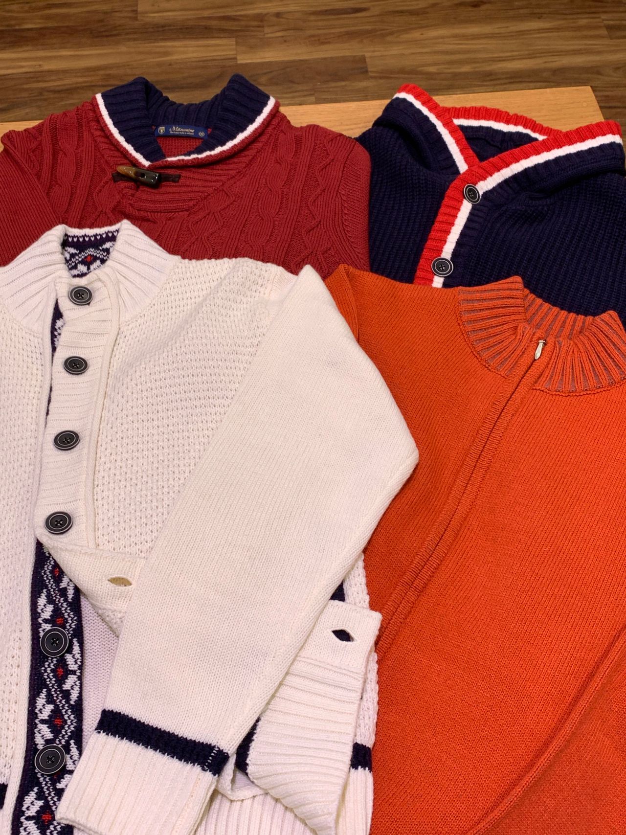 定番のフルZIPタイプから珍しいパーカータイプ、クラシックなボタンカーディガン、
