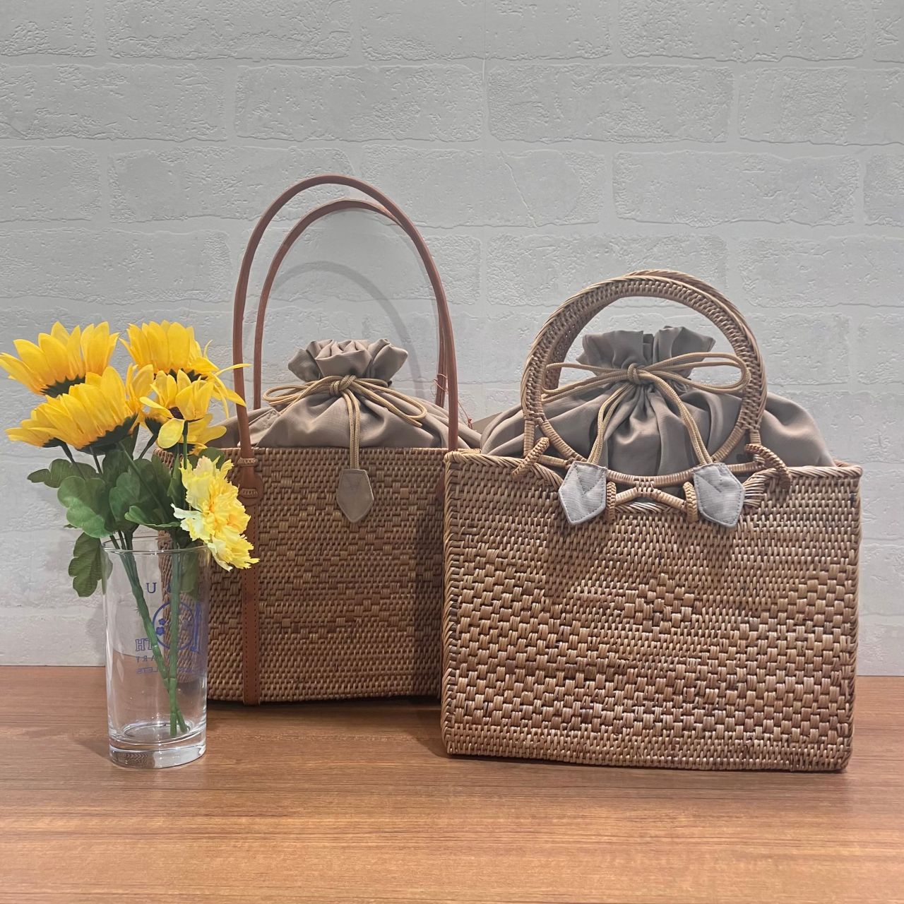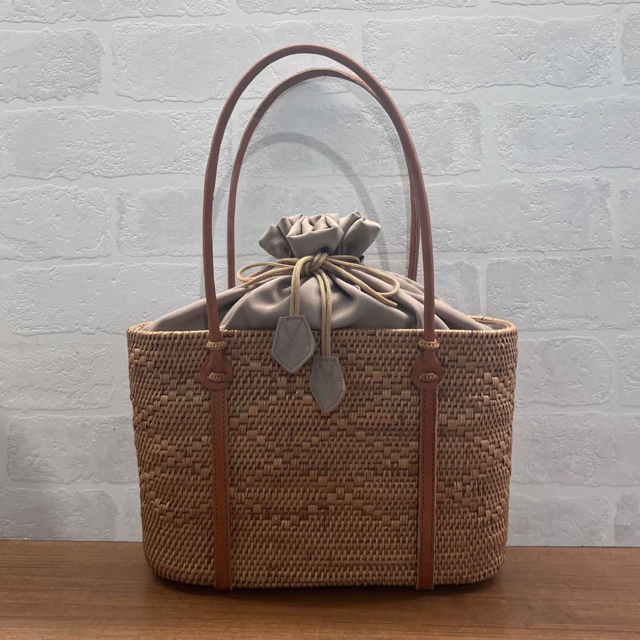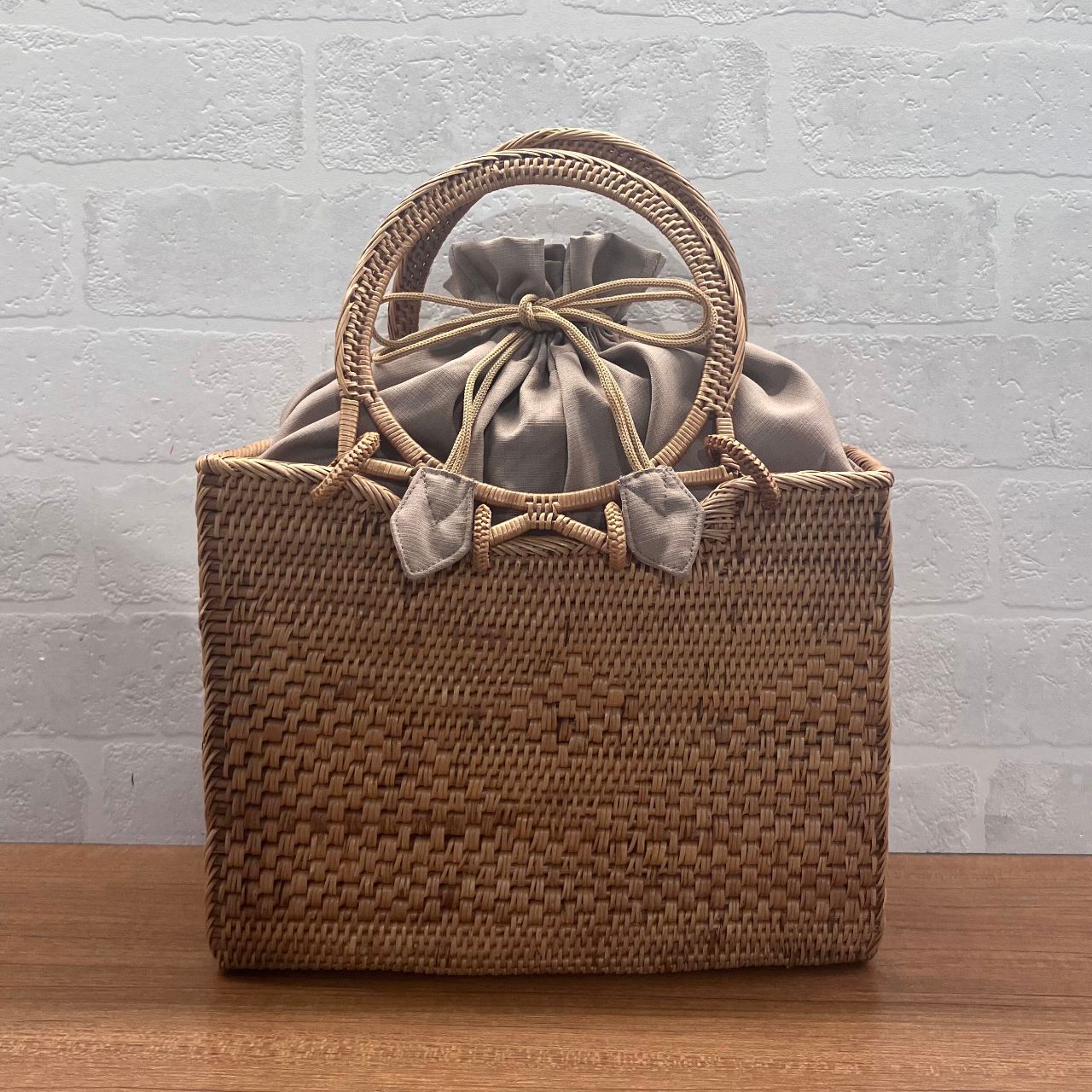 巾着部分を内側に入れて雰囲気が変えて