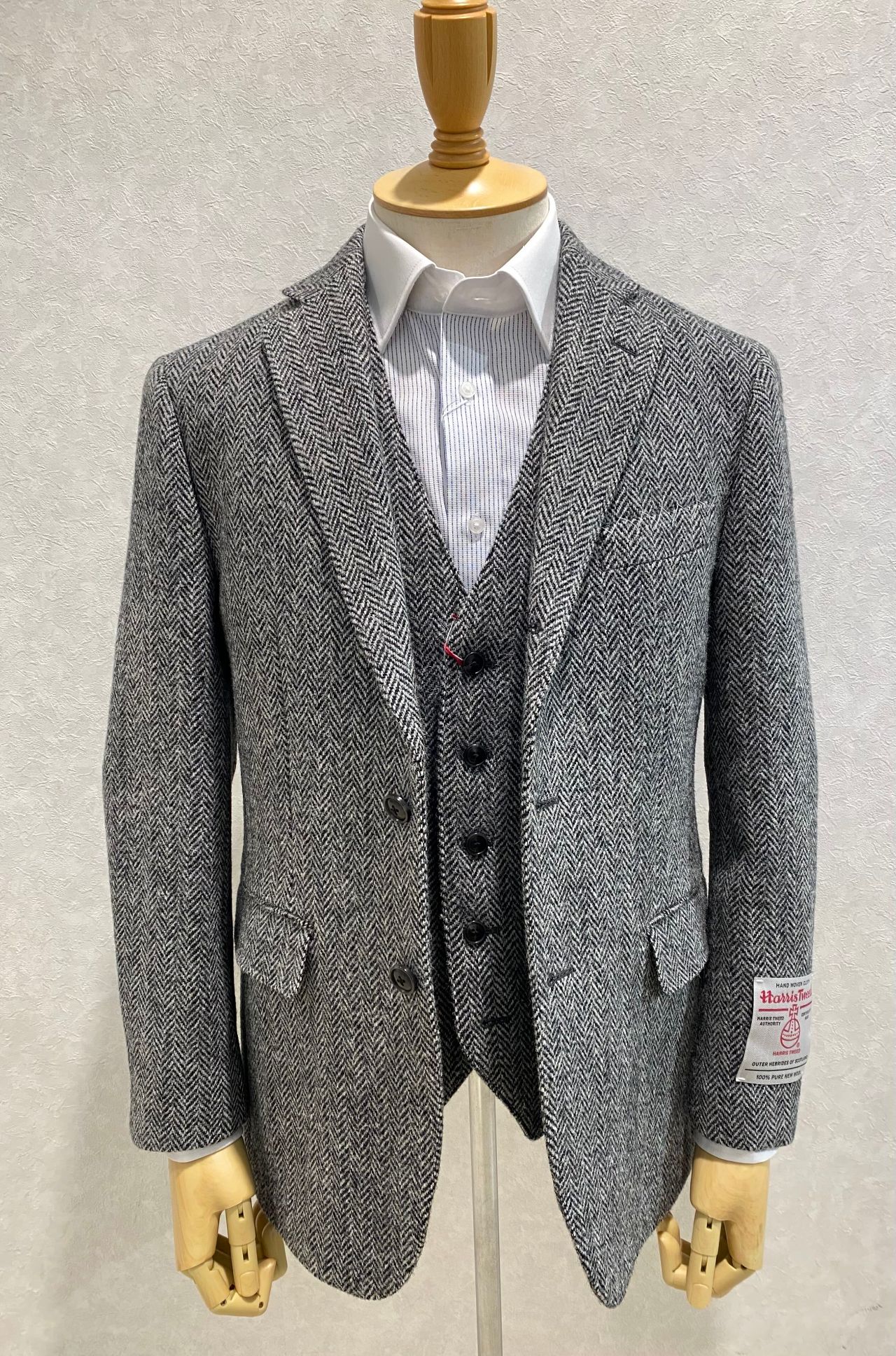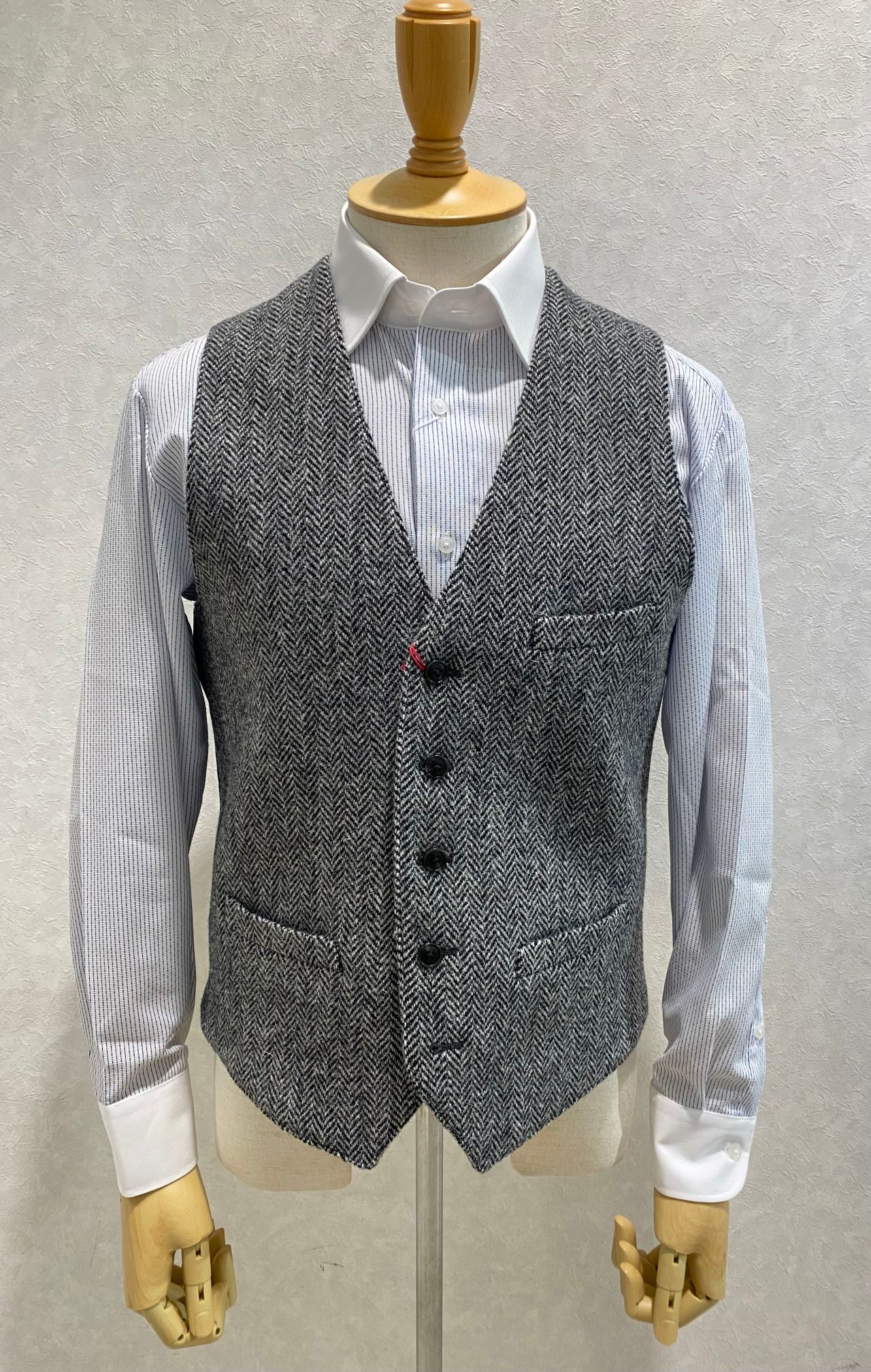 また、同じくHarris Tweedの生地を使用したベストも入荷しております。