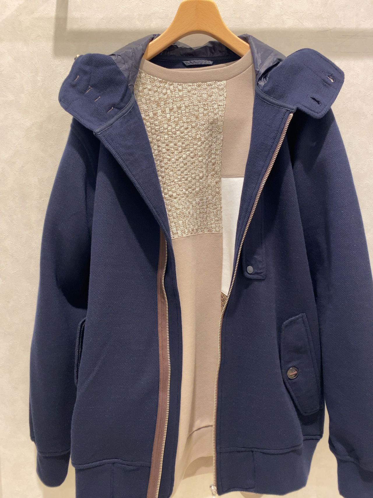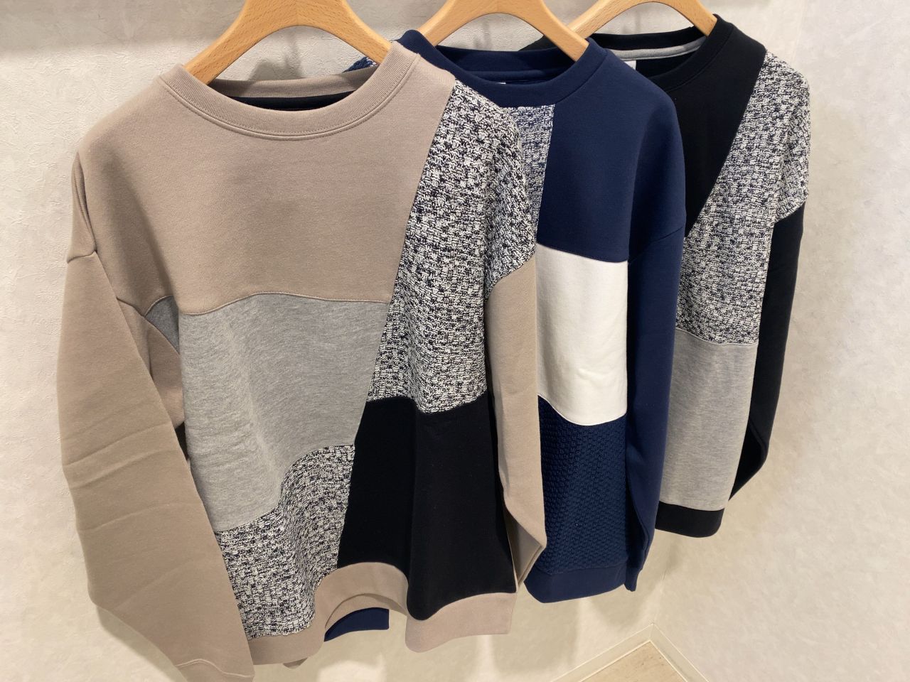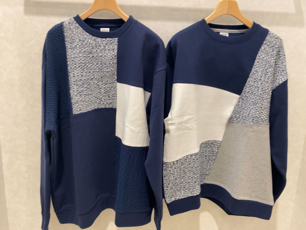 ニット素材とカットソー素材の切り替えと面白いデザインです。今回は2パターンご用意ございます。