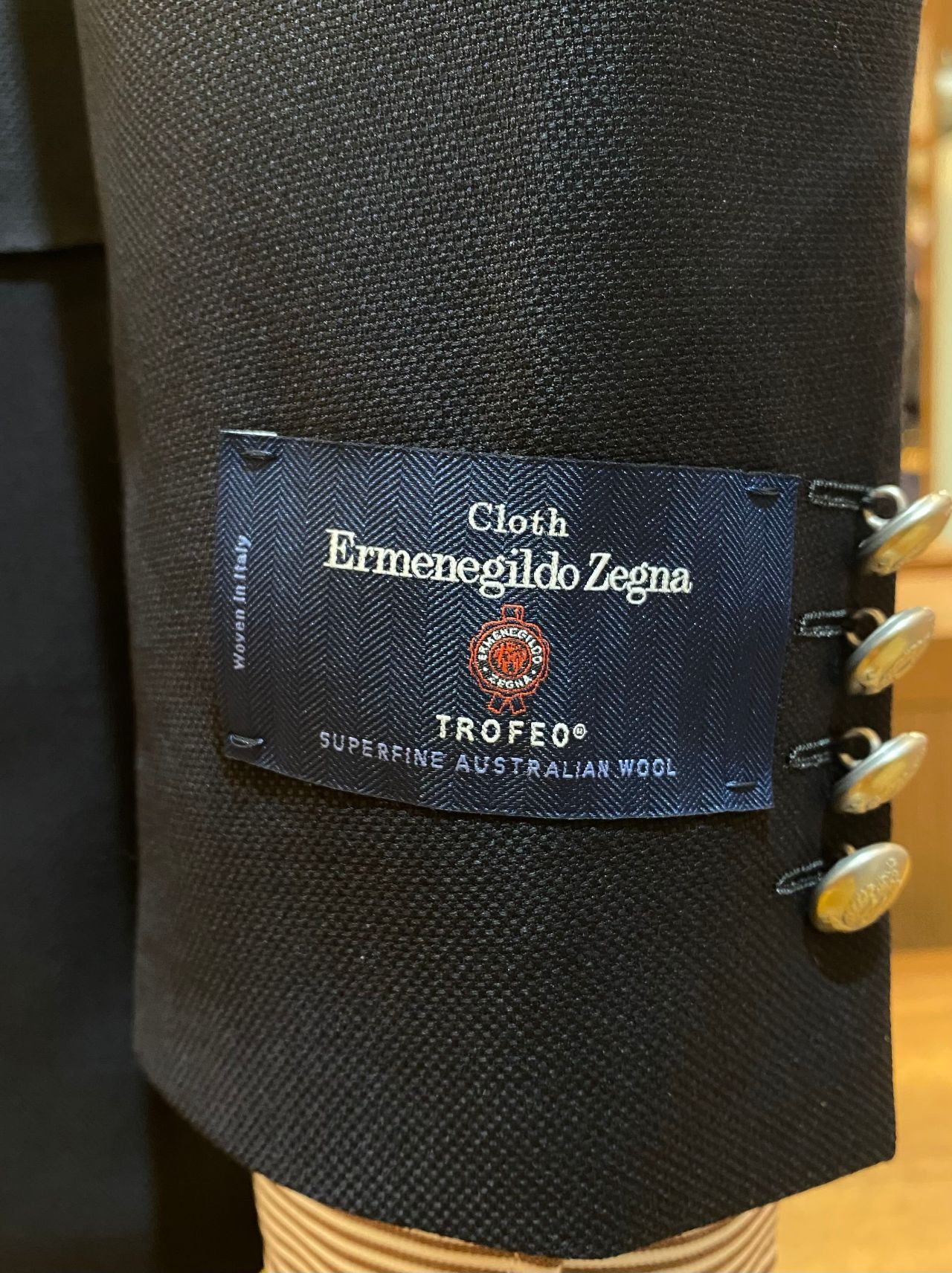 ゼニアの中でも、オーストラリアの品評会で優勝トロフィーを授与された原材料を使用しているところから名が取られた“トロフェオ”という最高級レーベルの生地を使用。