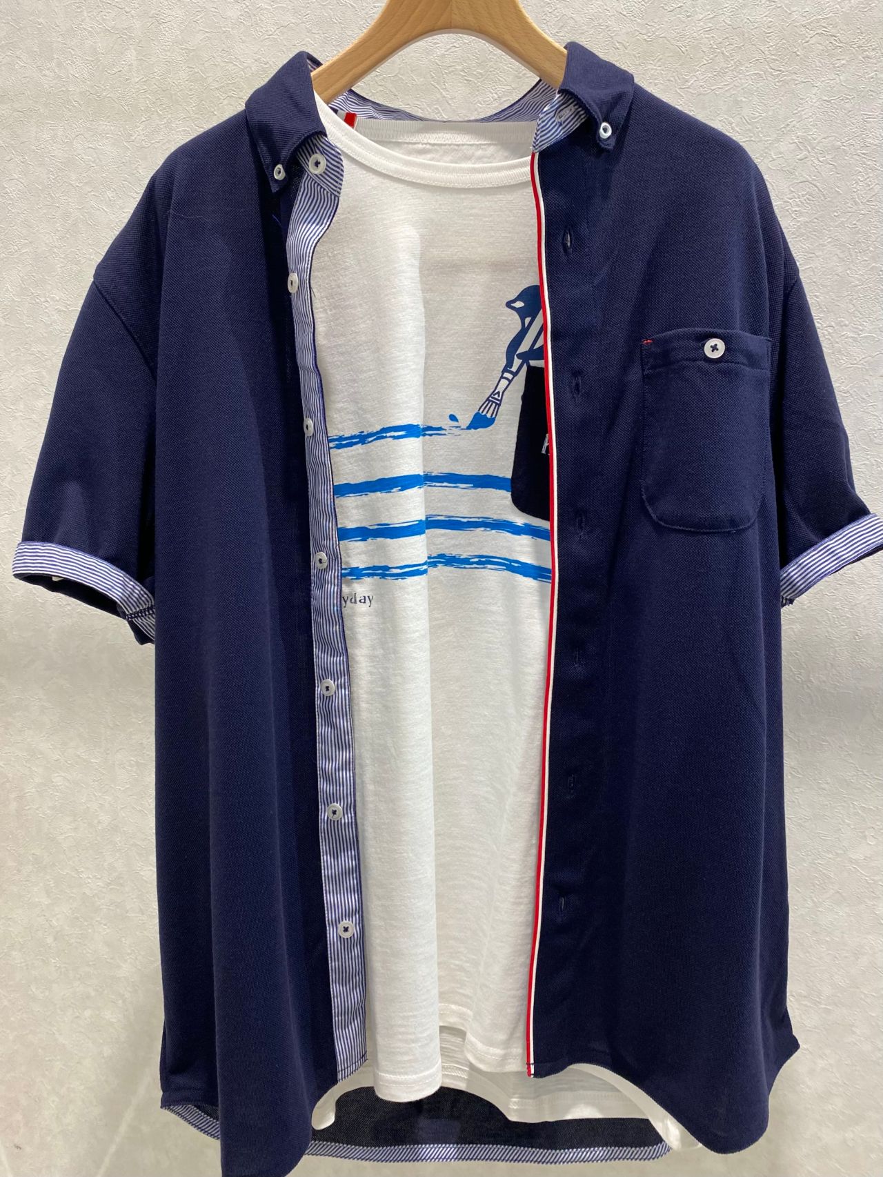 被って着るタイプだけでなく、羽織れるシャツデザインのポロシャツもございます。