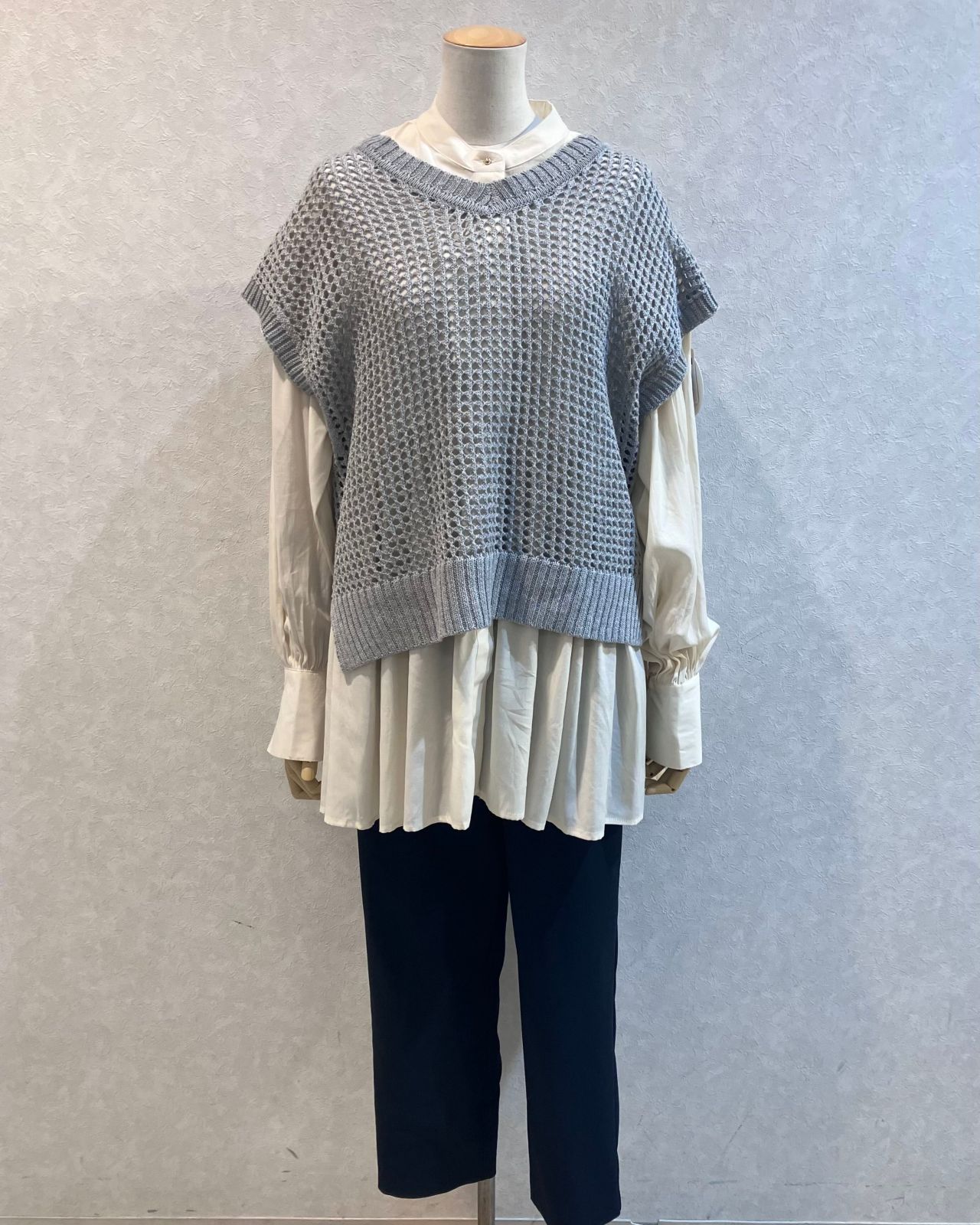 ベストと合わせた時は少しカジュアルな印象でしたが、