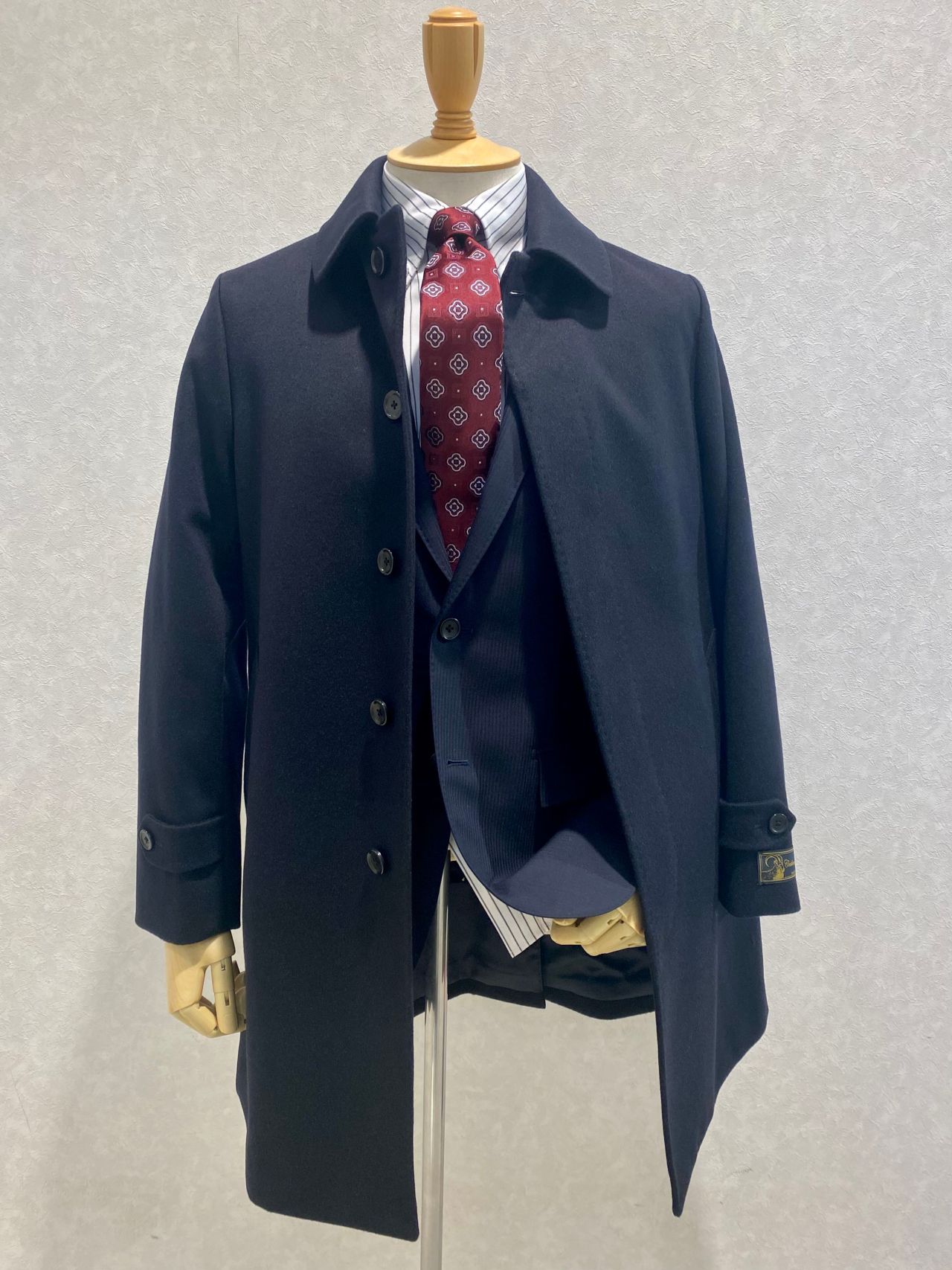 ウールが90%、カシミヤが10%の混成生地のコートになります。