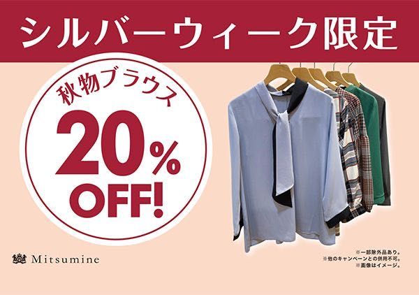 9/17〜9/26の2週間秋物ブラウス20%OFF