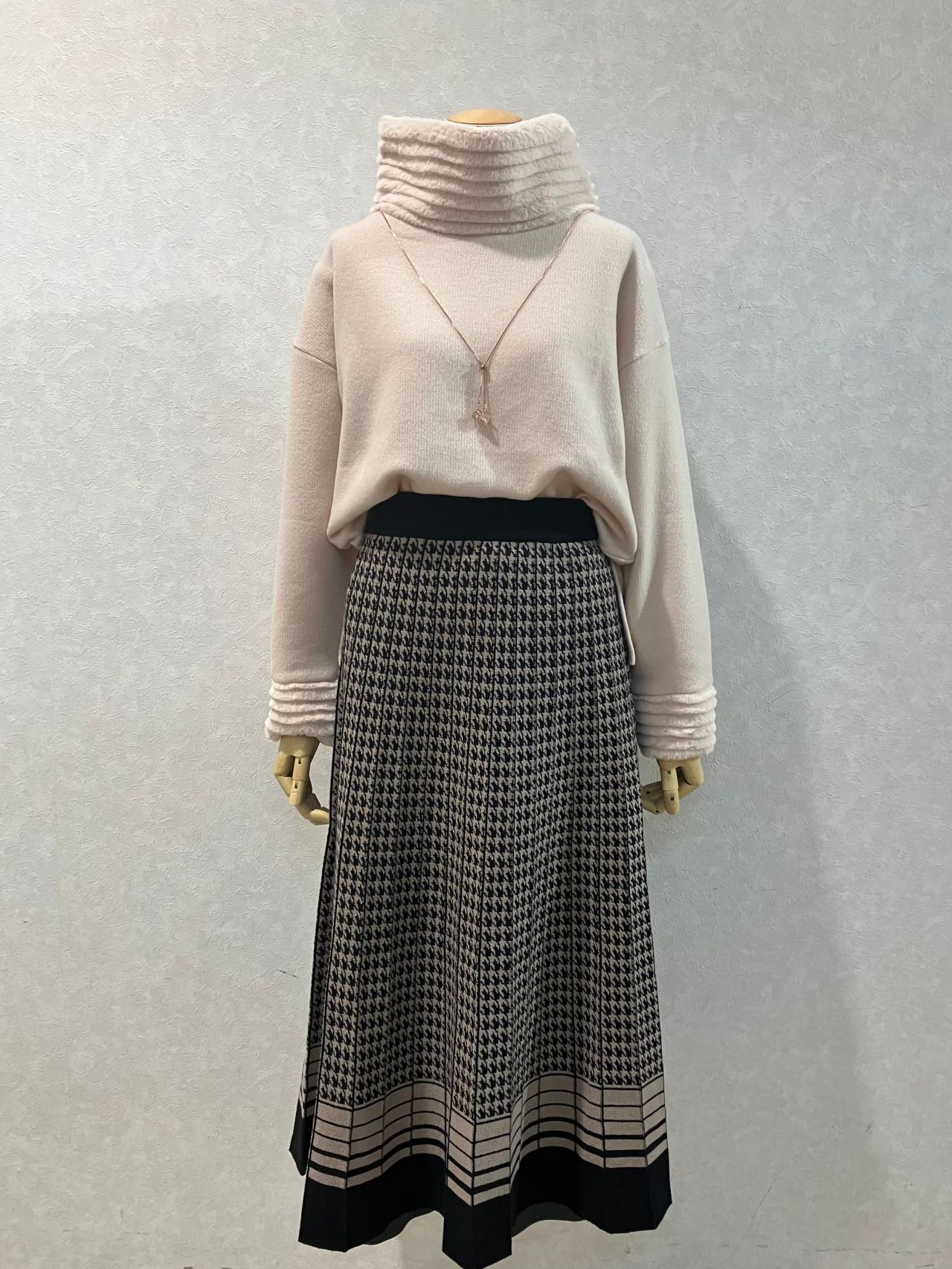 ニットスカートと合わせて暖か楽ちんスタイルになります!