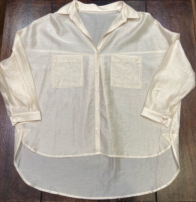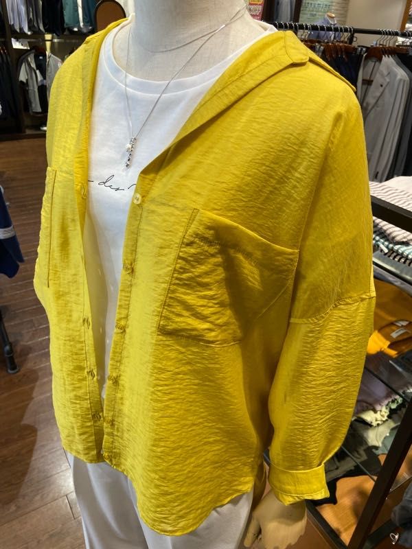 適度なハリと爽やかな透け感が春にピッタリの、シアー素材を使用したオープンカラーシャツです。