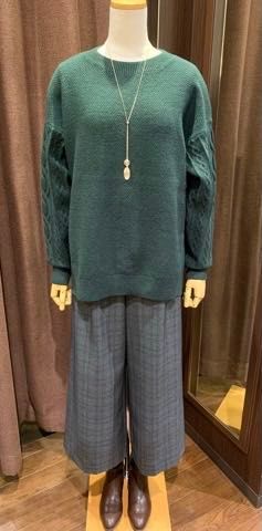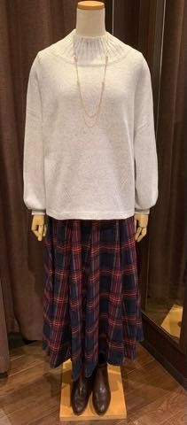 売れ筋のスカートと着回しのしやすいニットを合わせました。