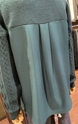 tops...ケーブル袖異素材切替ニット