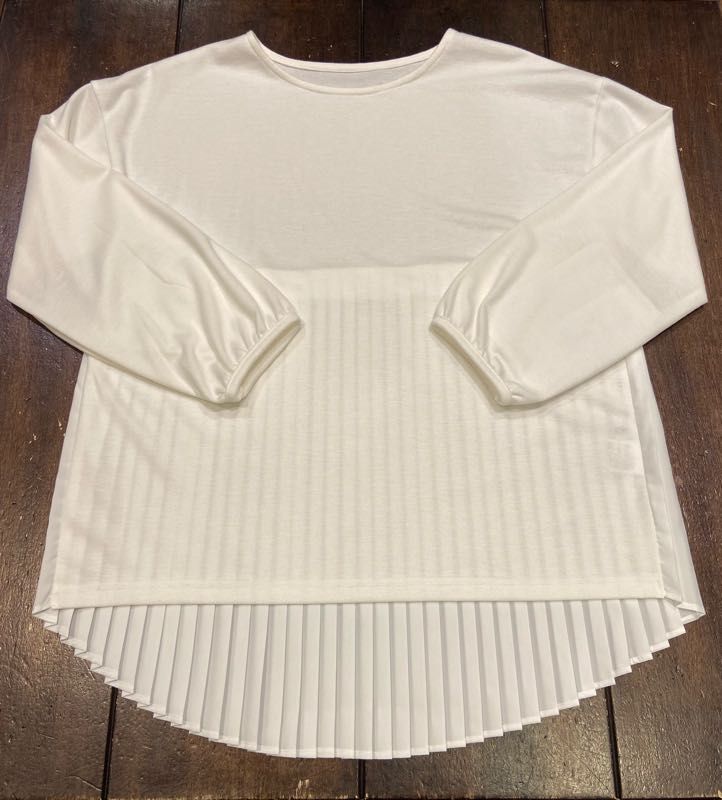 後ろ身頃にプリーツの入ったロングスタイルのカットソーです。