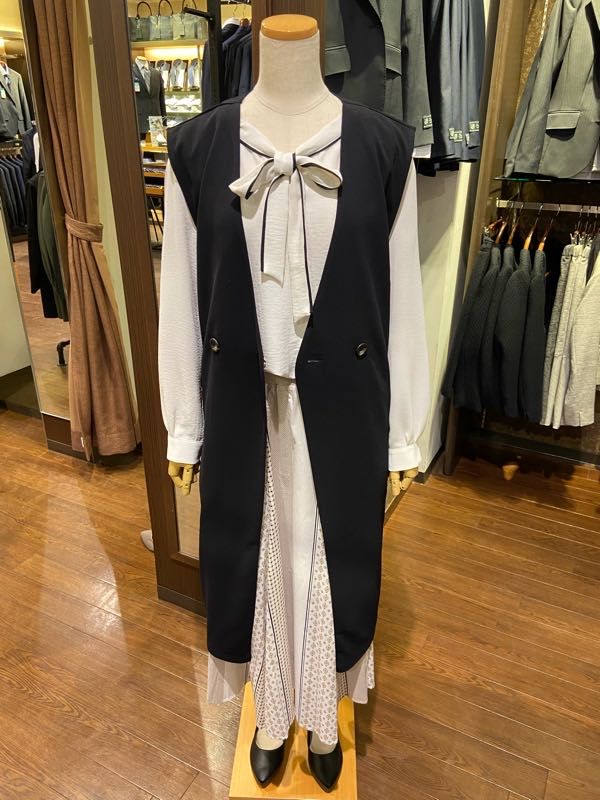 本日は春コーデの定番ロングジレをご紹介いたします。