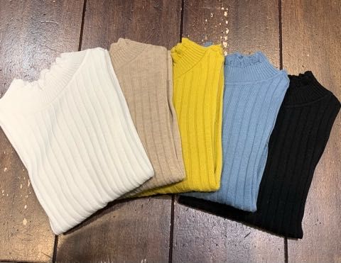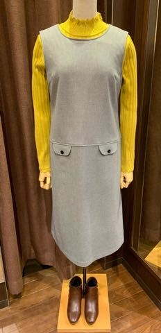 差し色に黄色のニット+白×黒のジャンスカを合わせてみました。
