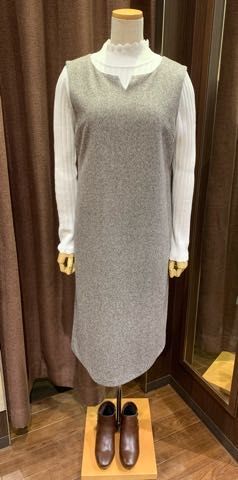 シンプルな白ニット+ブラウンのジャンスカを合わせてみました。