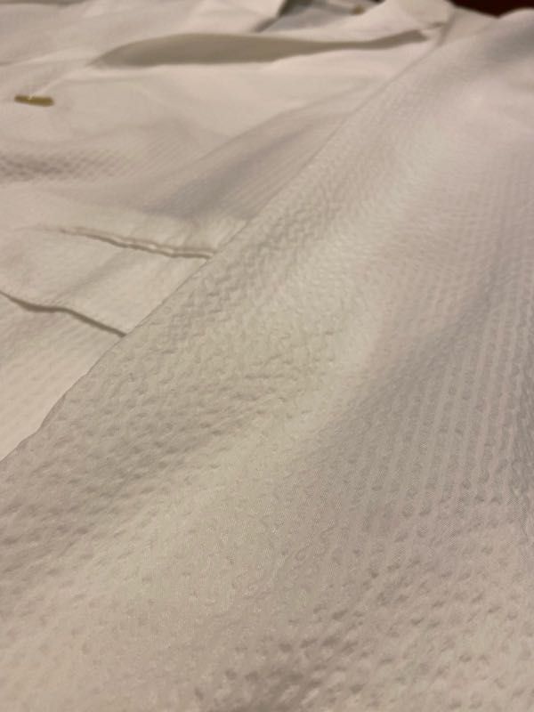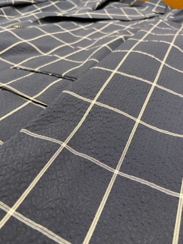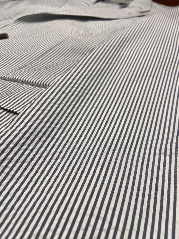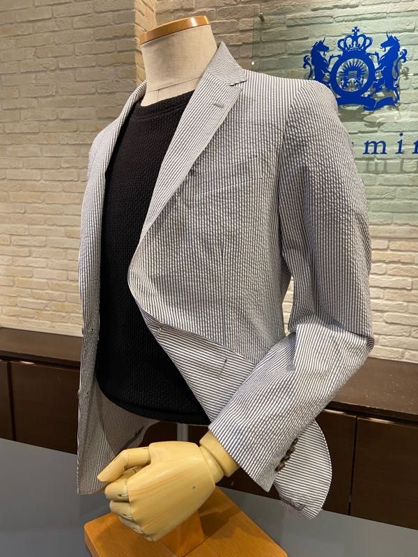 肌との接地面積が少ないためサラッとした着心地が特徴のシアサッカー生地に仕立て上げているので、気温が上がってくるこれからの季節でもストレス無くご着用いただけます。