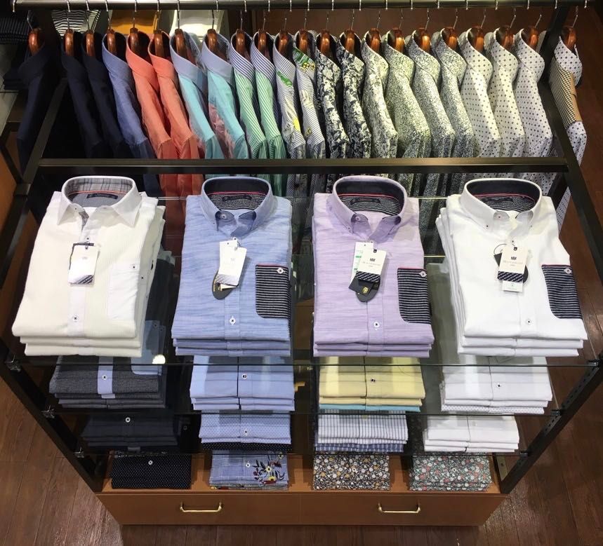 最後に、カジュアルシャツを使った店内ディスプレイを一部ご紹介いたします。