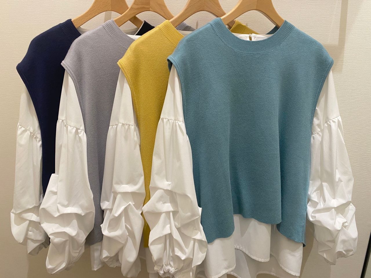 定番のニットベストとブラウスのアンサンブルです!