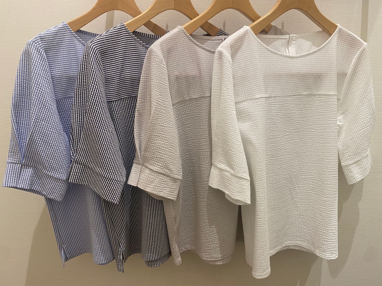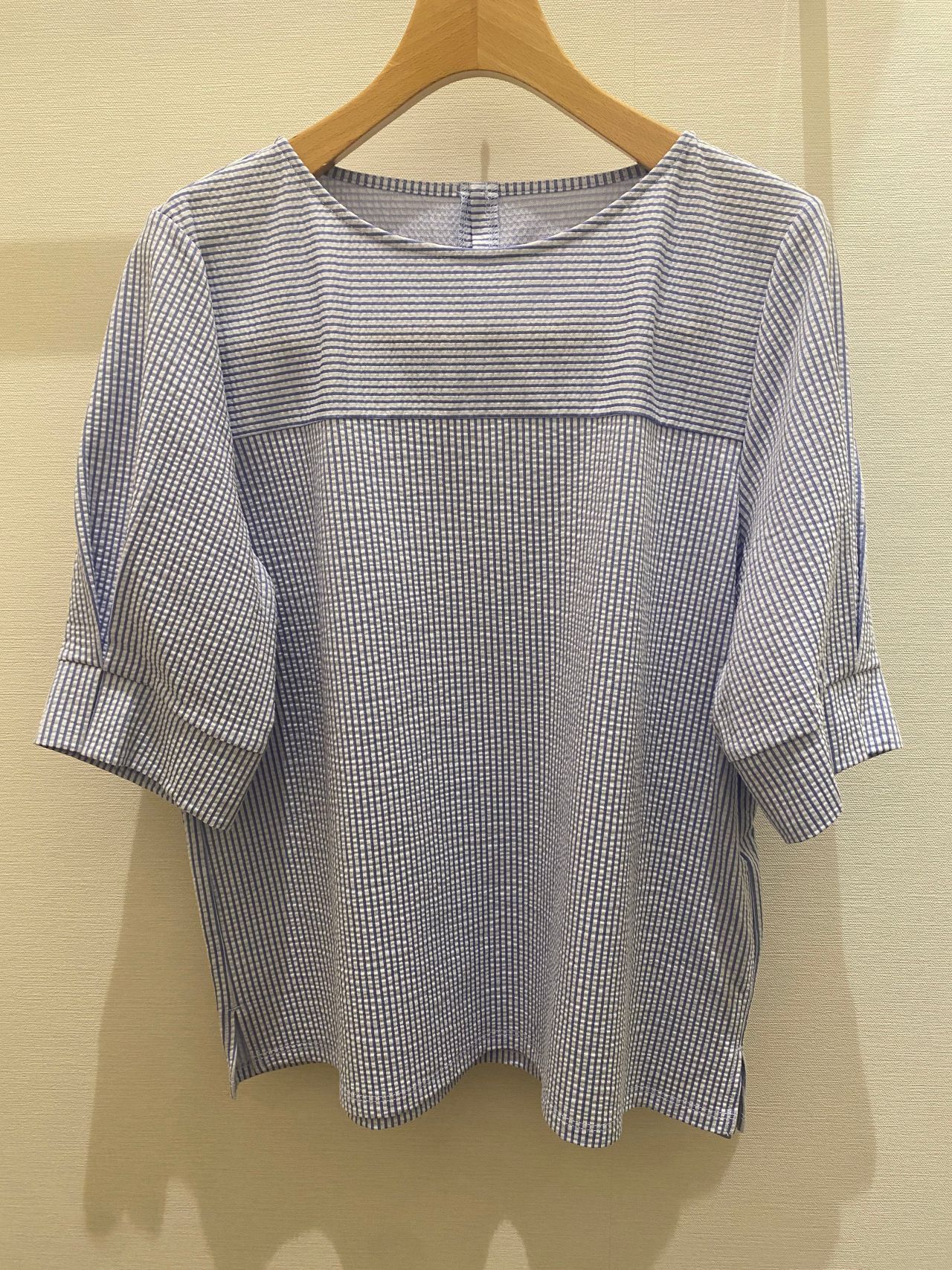 同じサッカー生地で形違いのブラウスもご用意しております。