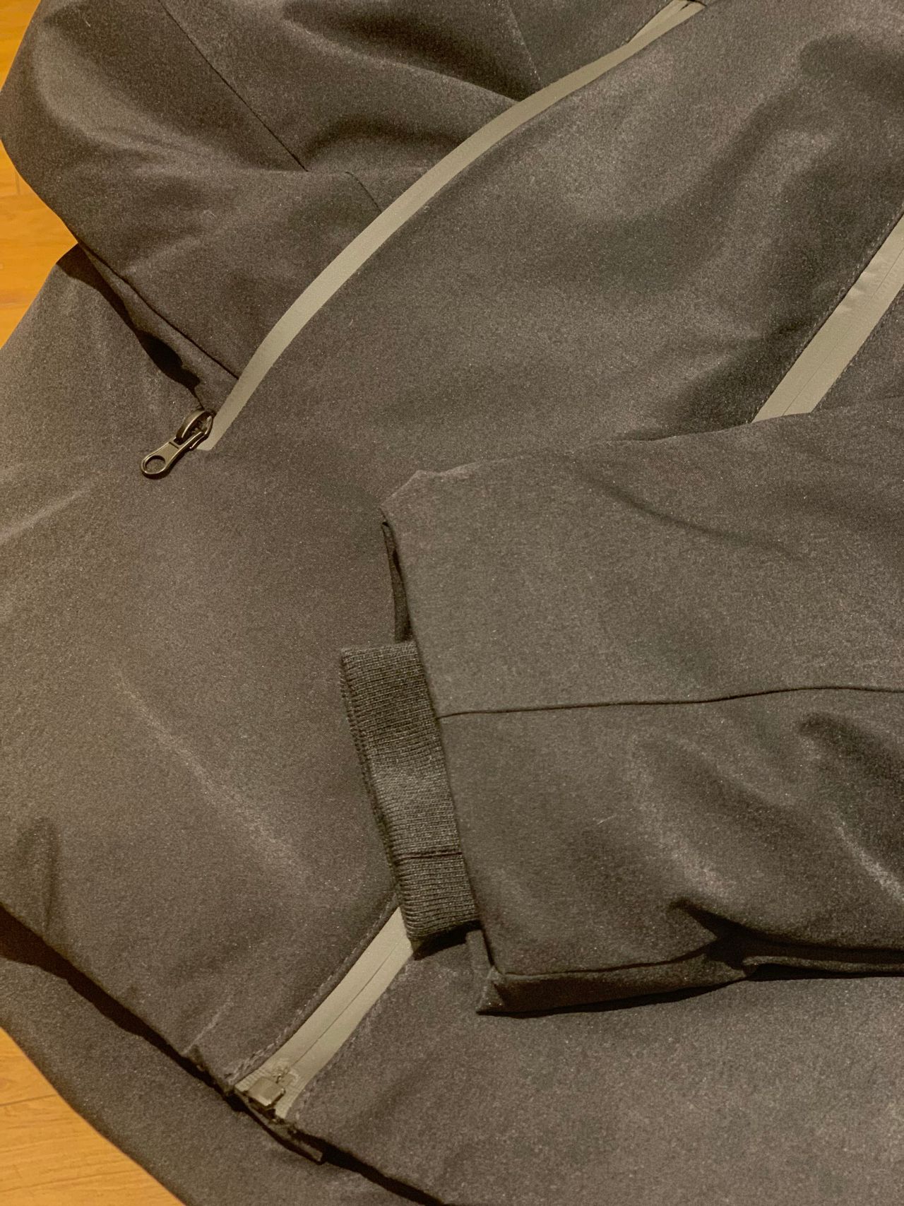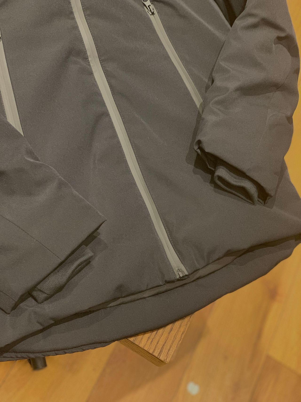※止水ファスナーが写真では光の具合でグレーに光って見えますが実物は黒色です。