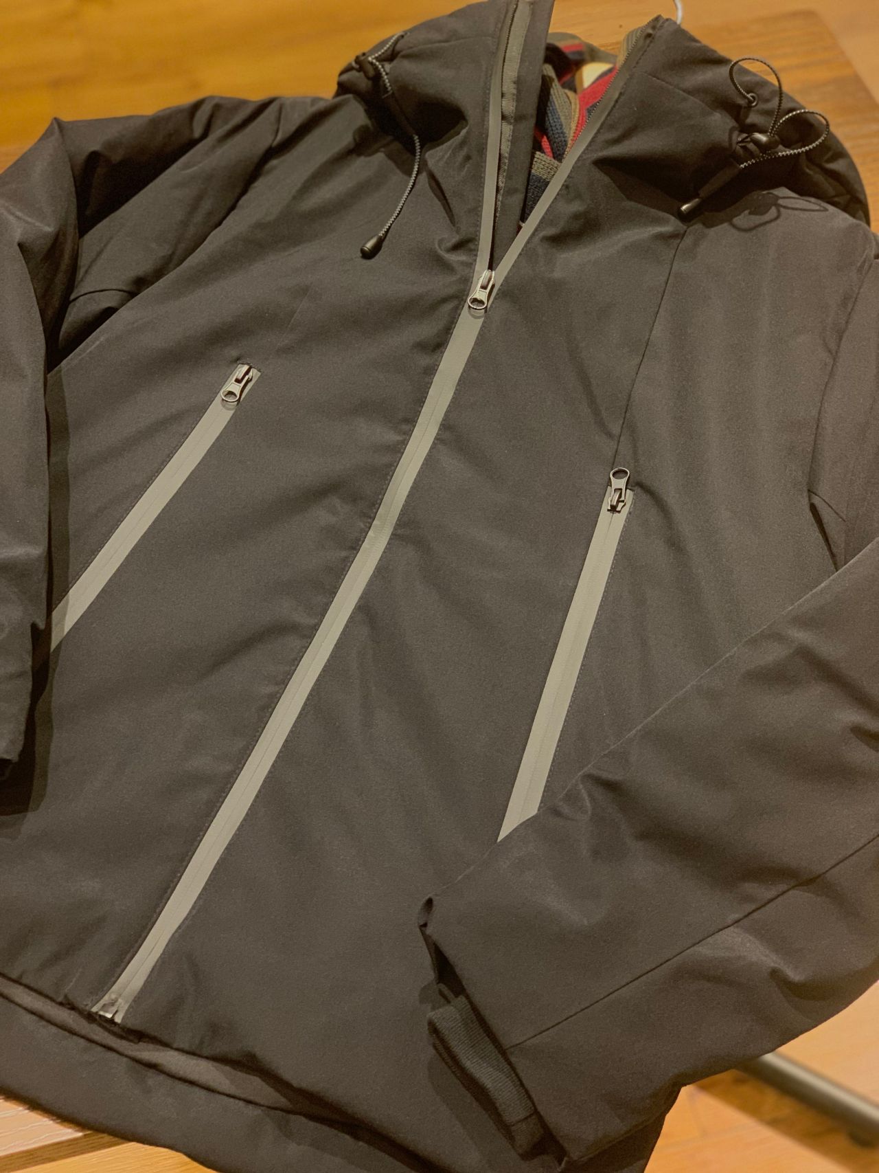 存在感のある止水ファスナーと大きめのポケットが特徴的です。