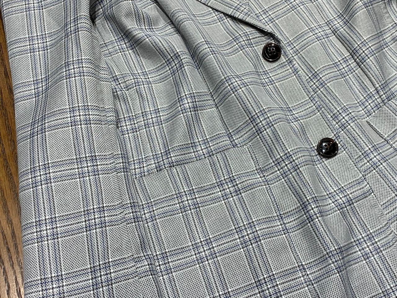 ポリエステル・レーヨンの混紡素材、ドライタッチで生地も軽いです。※チャコールのみポリウレタンが2%混紡されています。